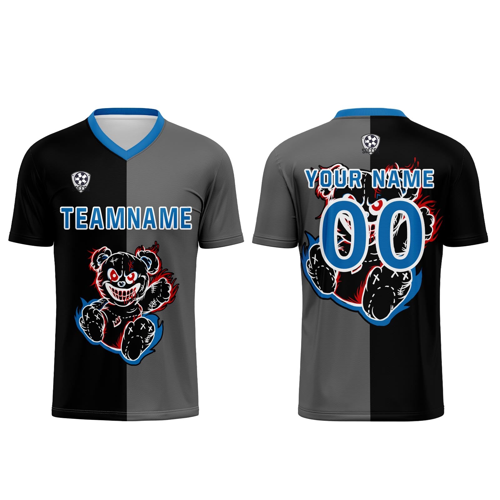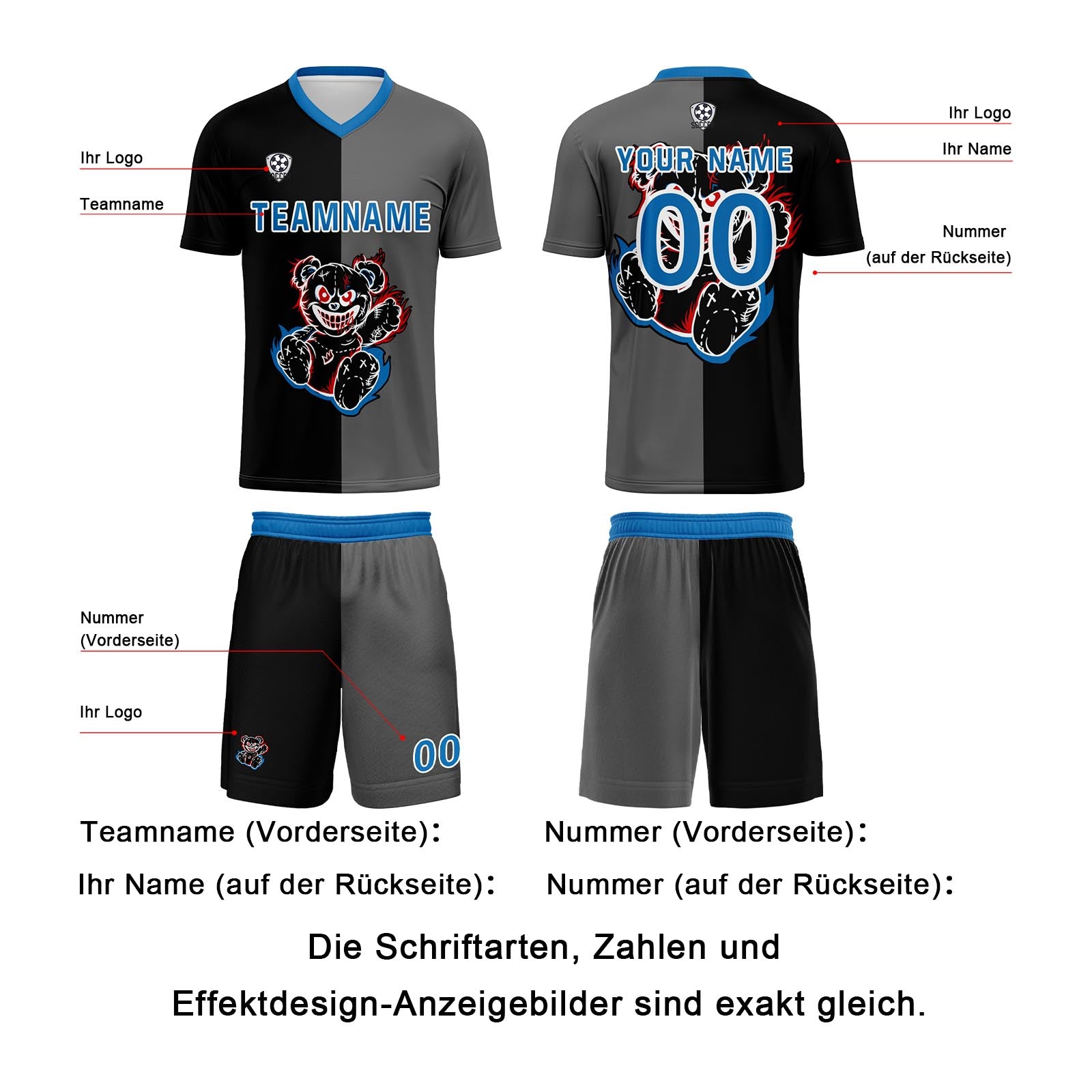 Benutzerdefinierte Schwarz Blau Fußball Trikots für Männer Frauen Personalisierte Fußball Uniformen für Erwachsene und Kind