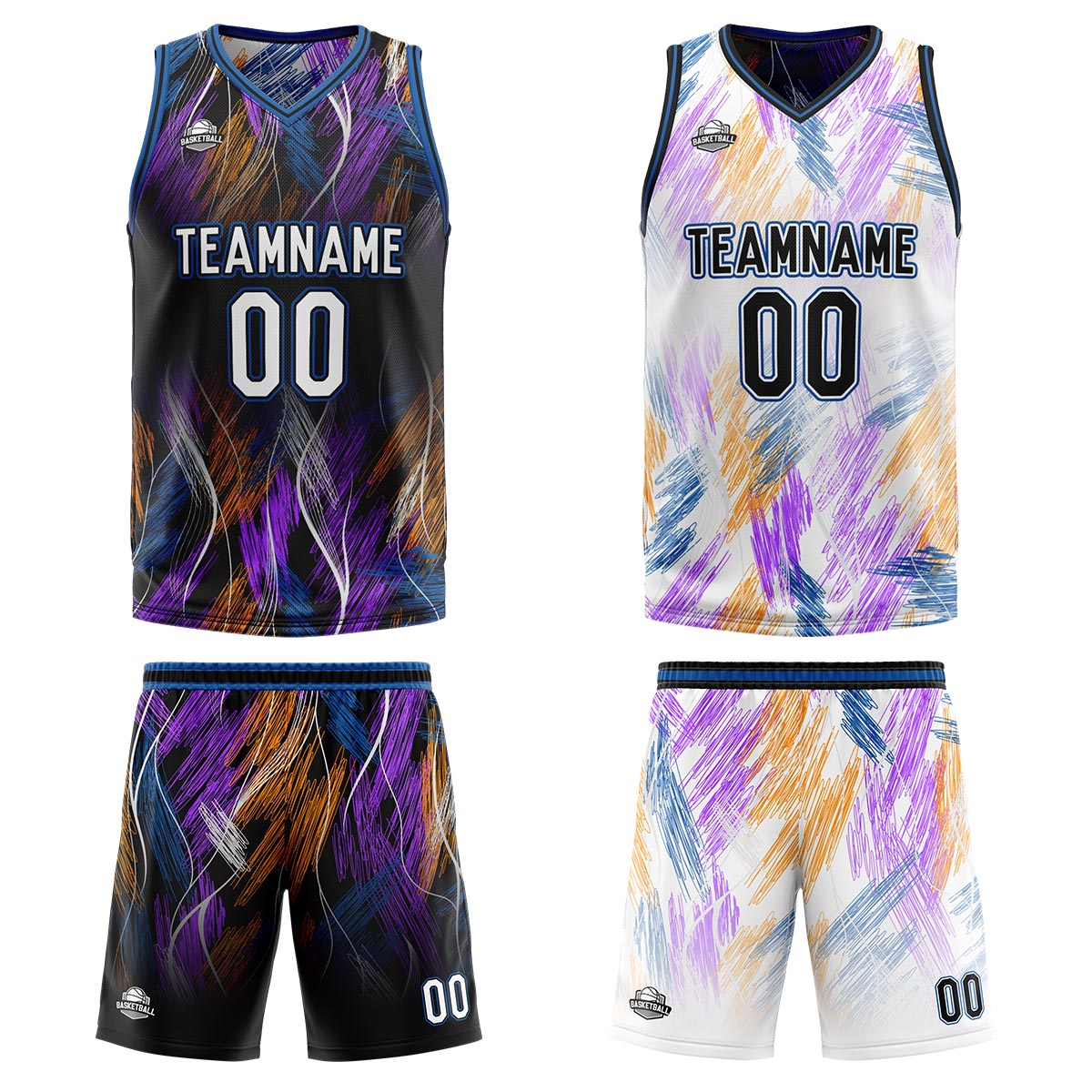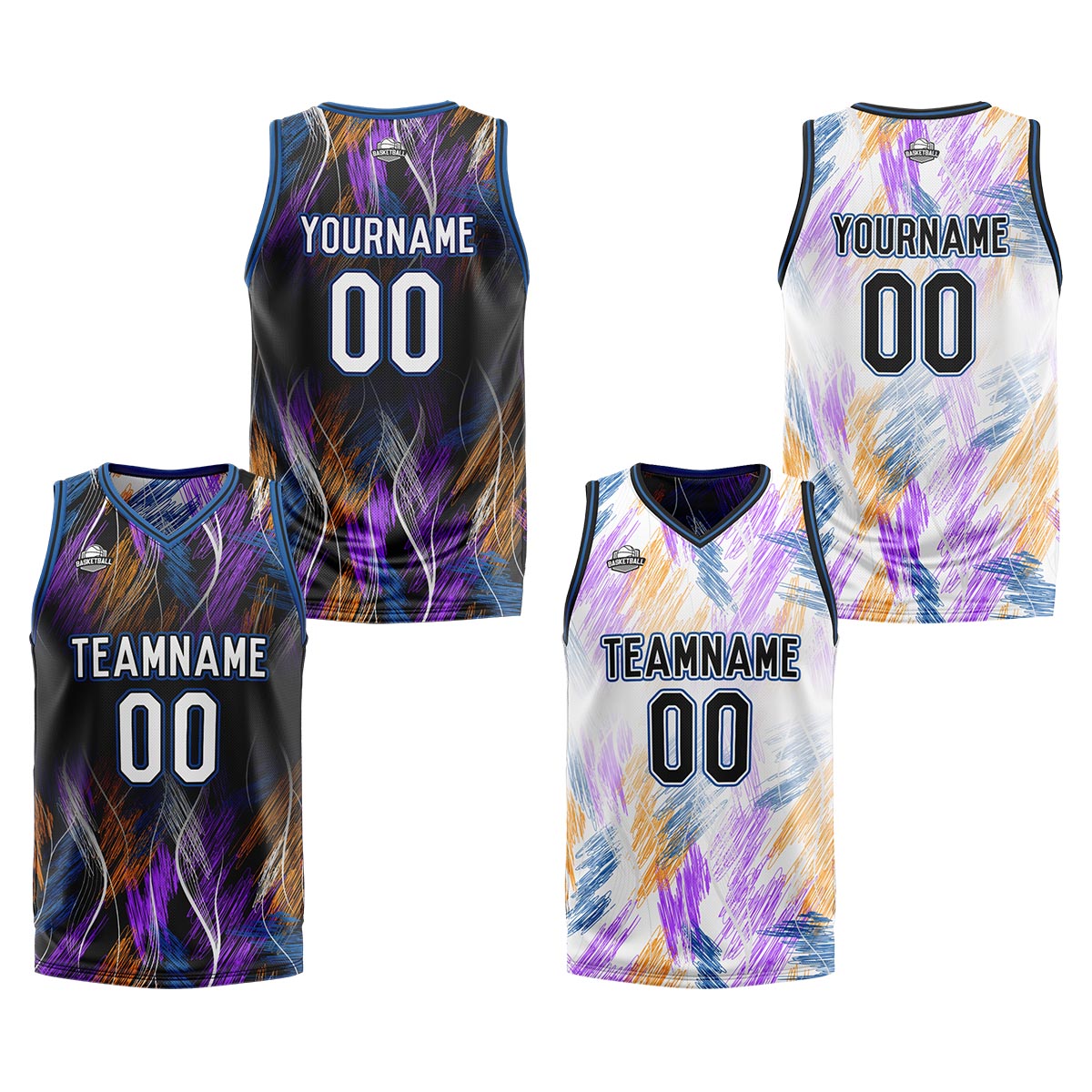 Benutzerdefinierte Schwarz Blau Reversible Basketball Jersey Personalisierte Print Name Nummer Logo