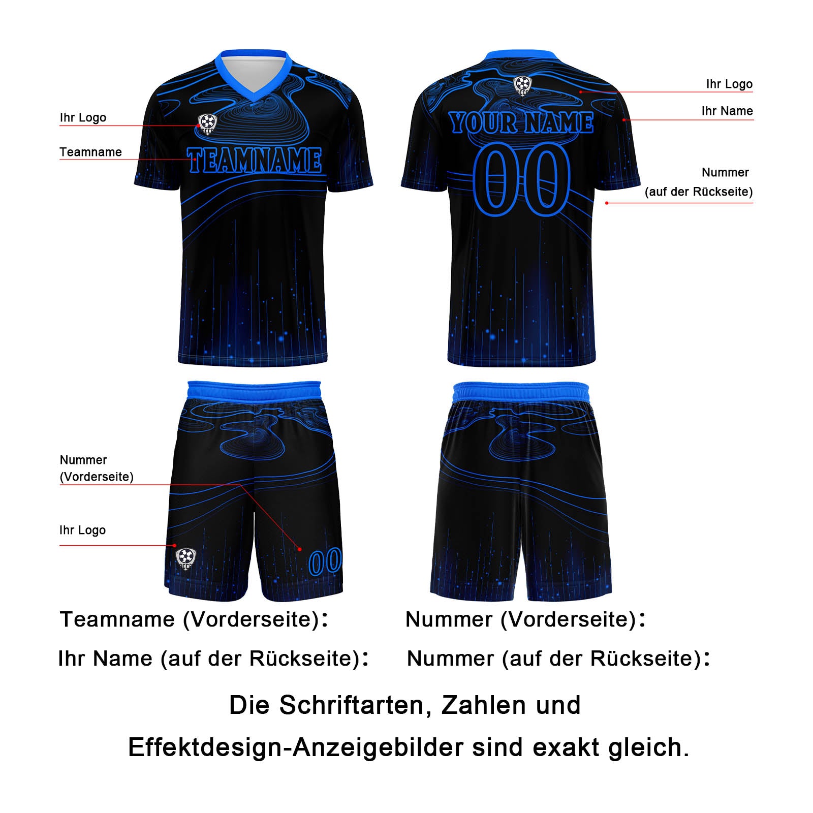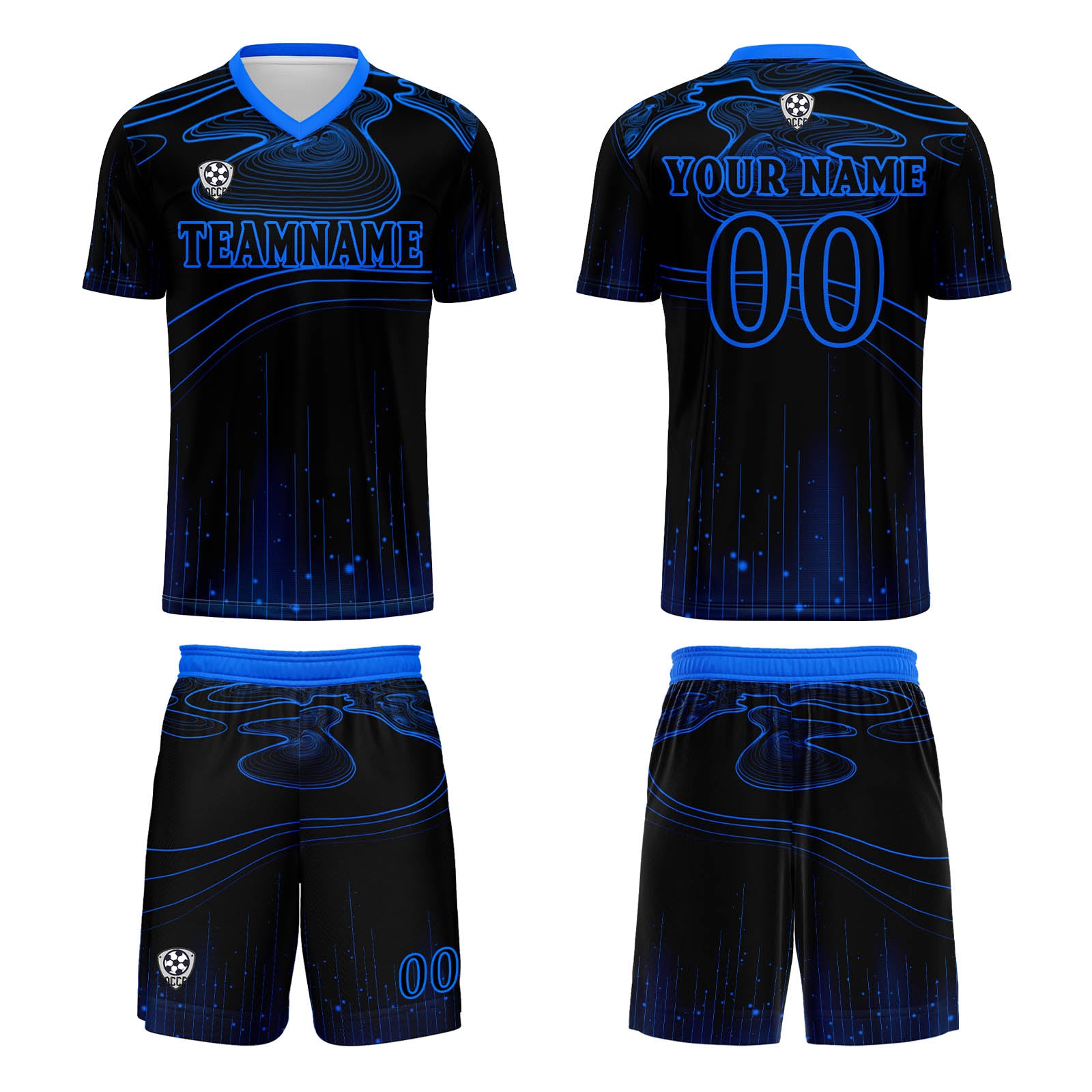 Benutzerdefinierte Schwarz Blau Trikots für Männer Frauen Personalisierte Fußball Uniformen für Erwachsene und Kind