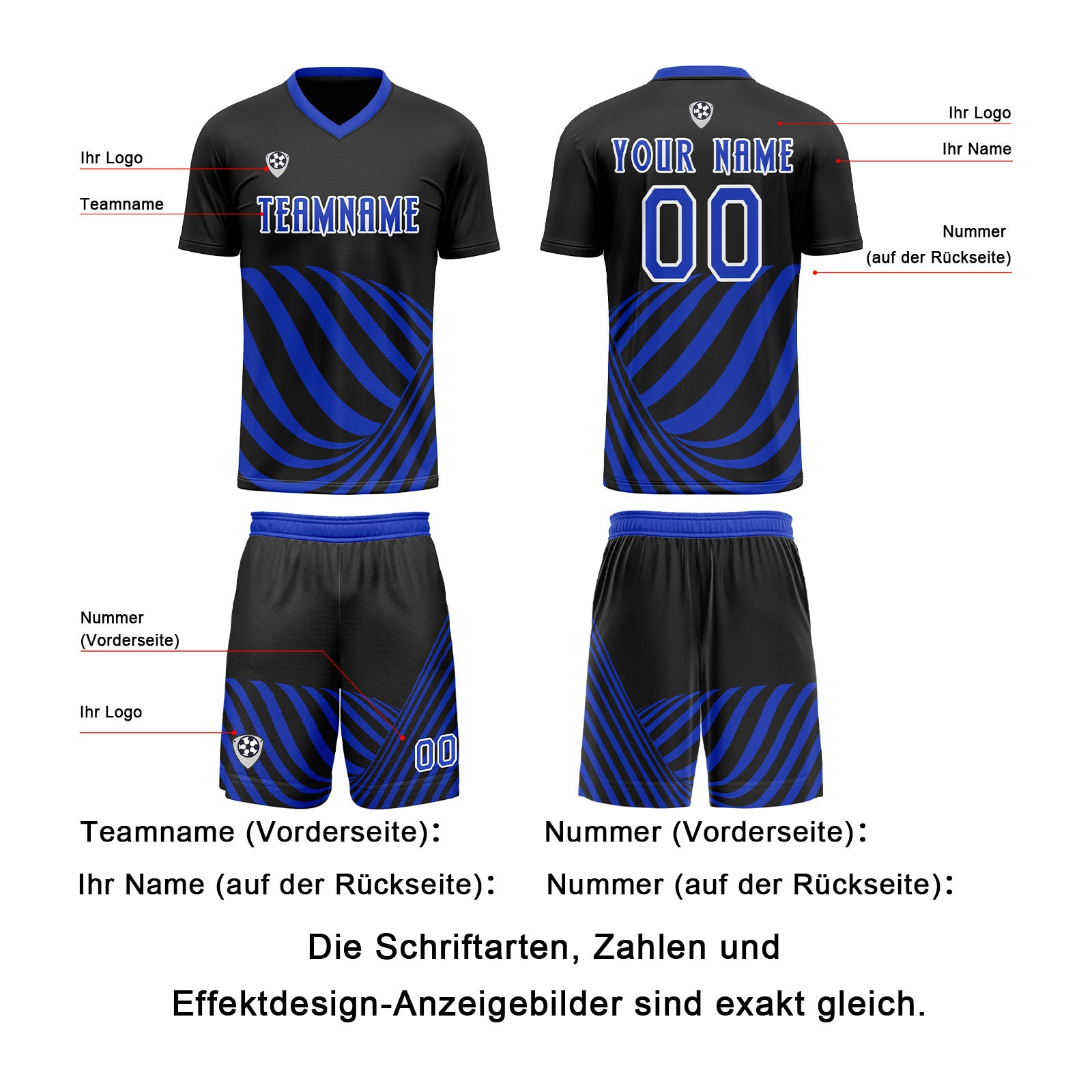 Benutzerdefinierte Schwarz Blau Trikots für Männer Frauen Personalisierte Fußball Uniformen für Erwachsene und Kind