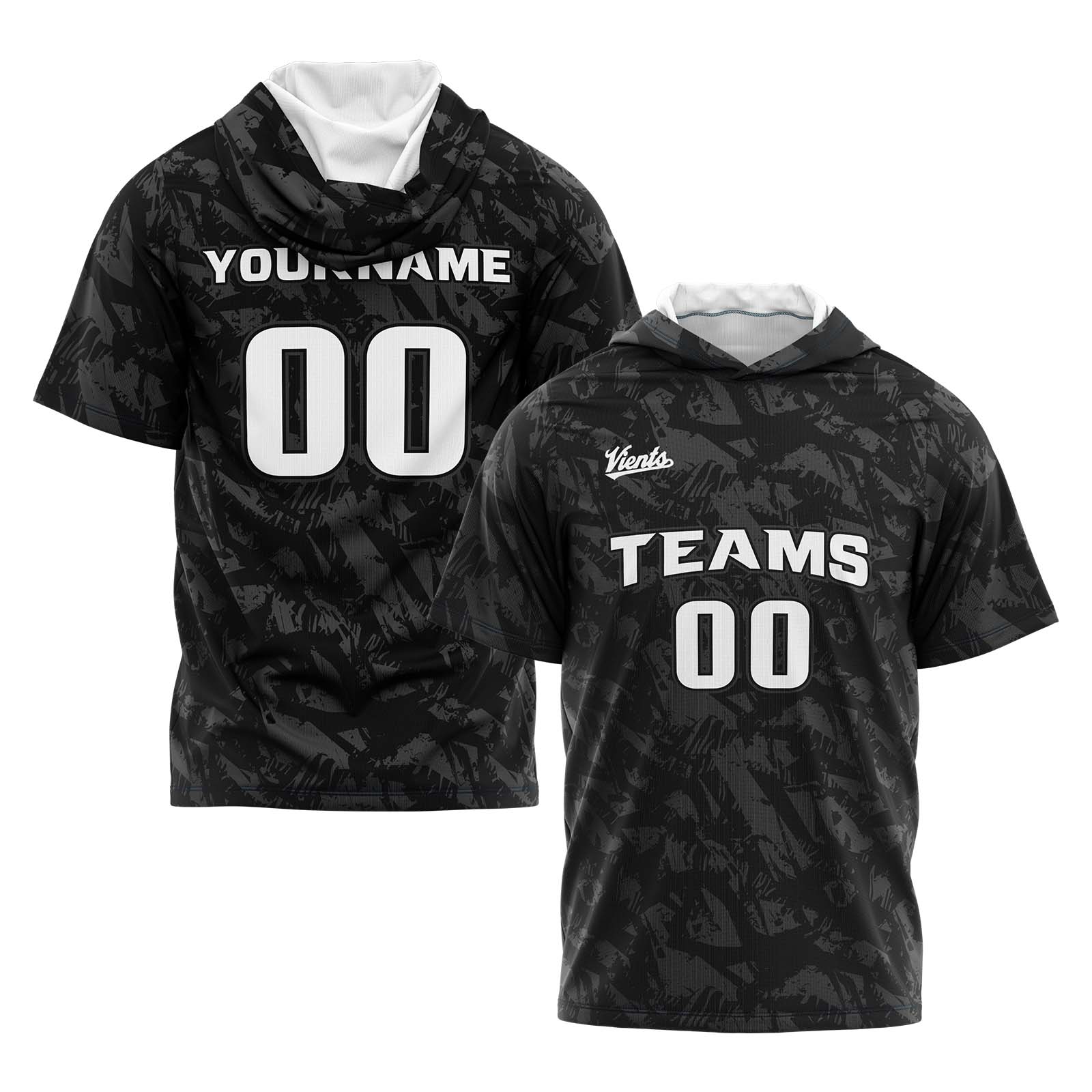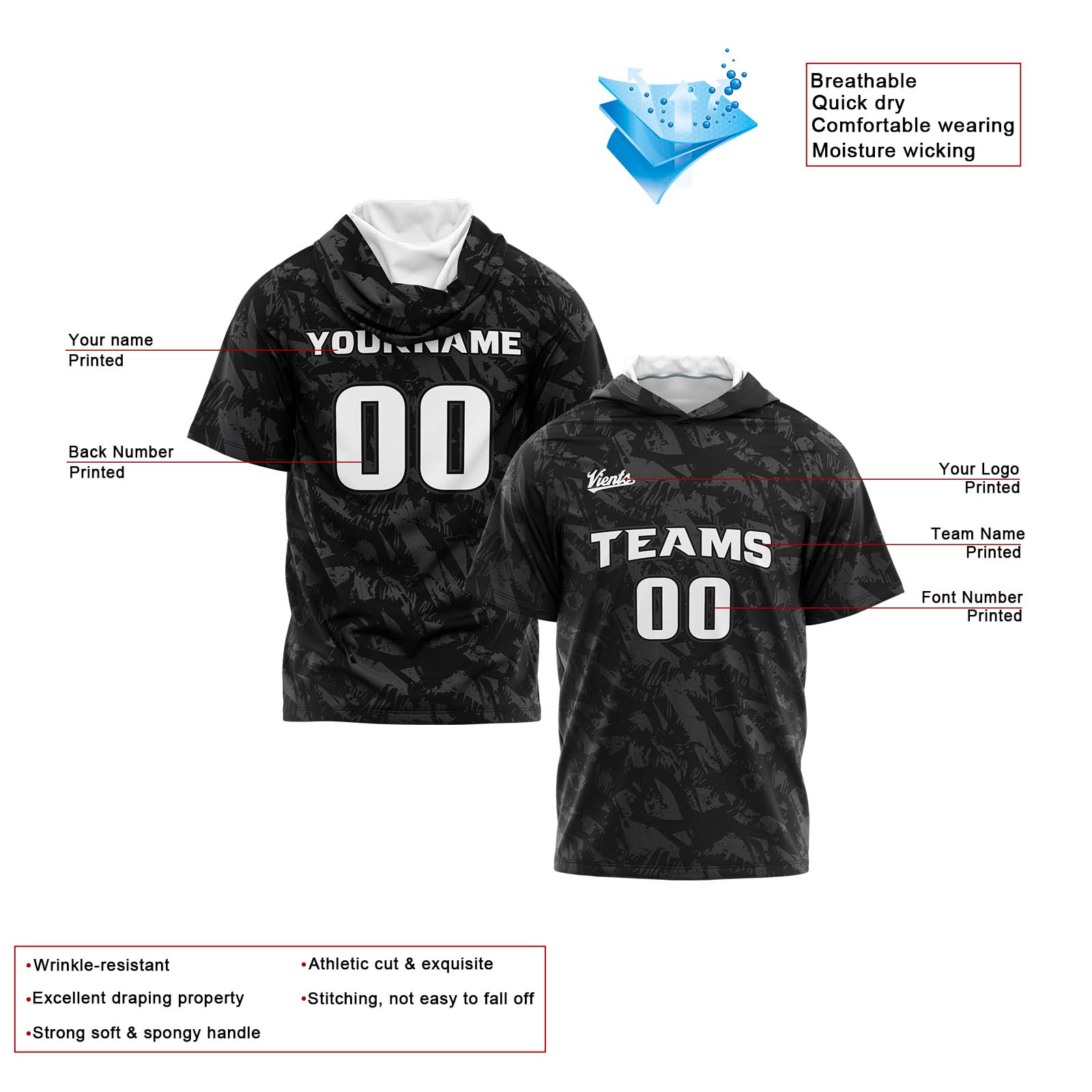 Benutzerdefinierte Schwarz Grau Kurzarm-Kapuzenpullover für Männer Frauen Hemden mit Kapuzen gedruckt Name Logo