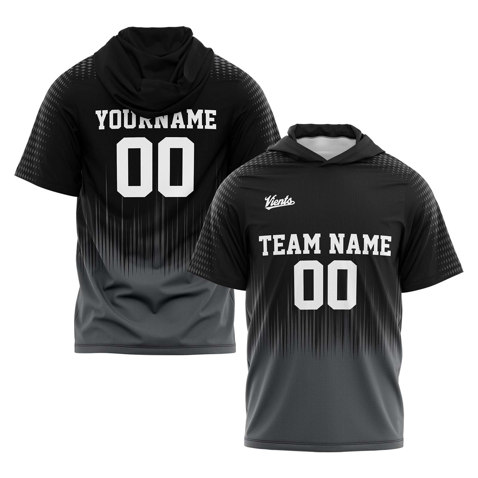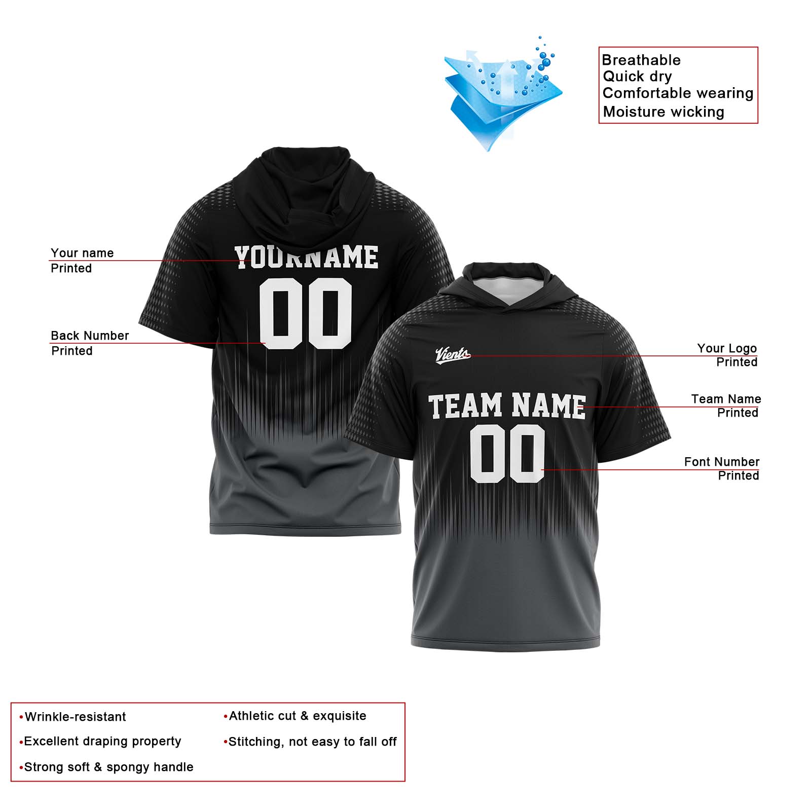 Benutzerdefinierte Schwarz Grau Kurzarm-Kapuzenpullover für Männer Frauen Hemden mit Kapuzen gedruckt Name Logo