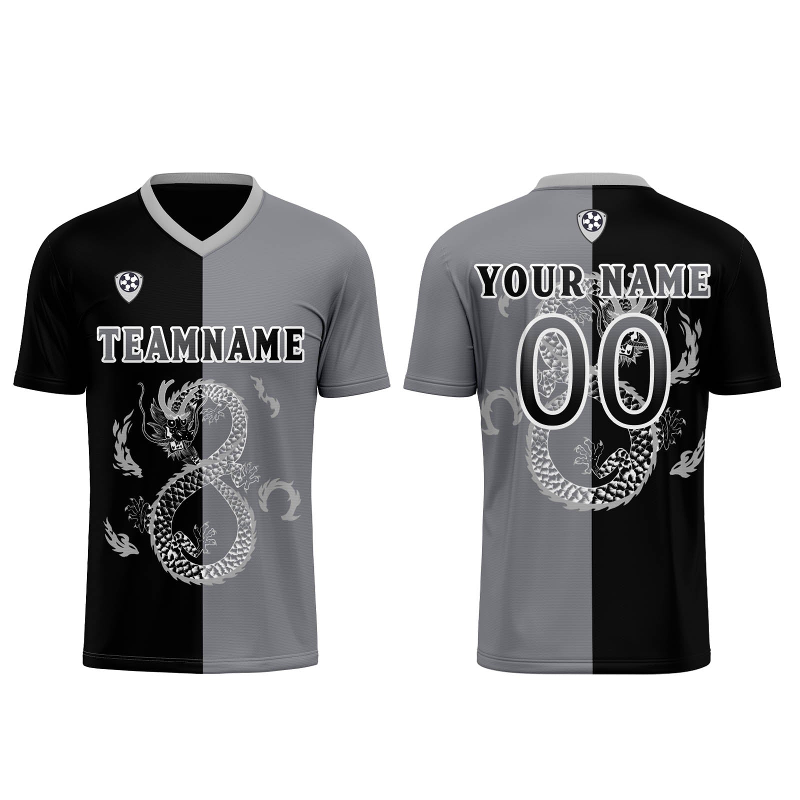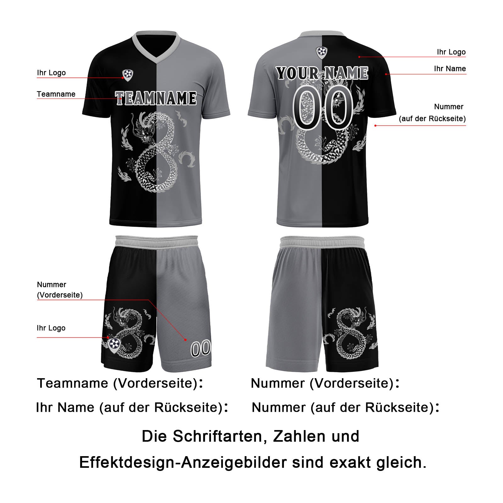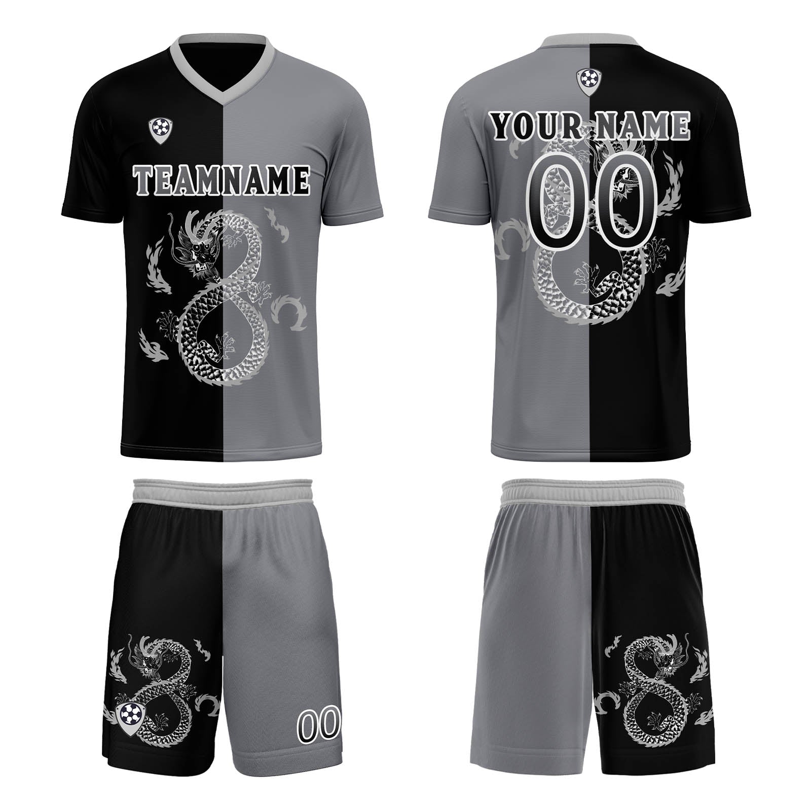 Benutzerdefinierte Schwarz Grau Trikots für Männer Frauen Personalisierte Fußball Uniformen für Erwachsene und Kind