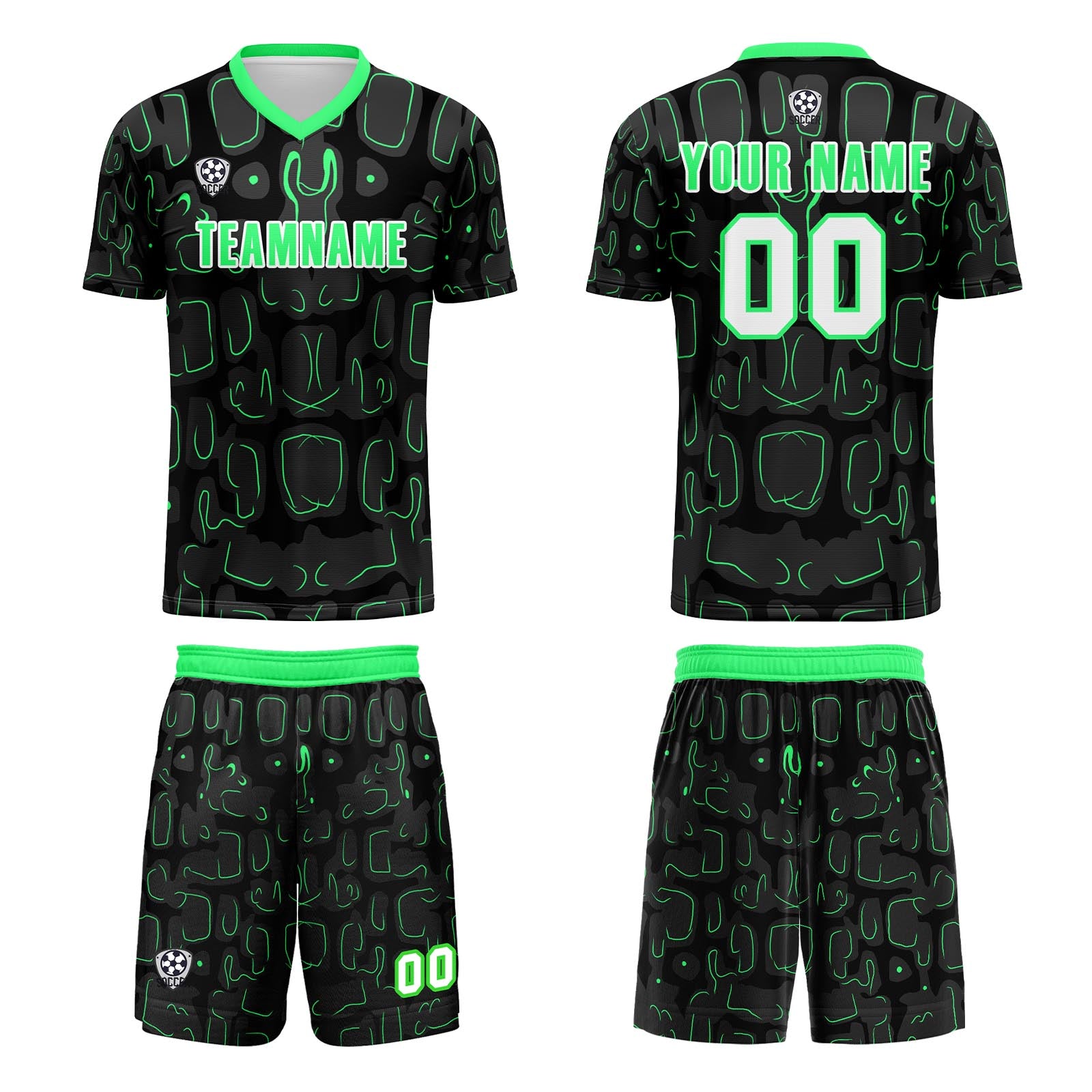 Benutzerdefinierte Schwarz Grün Fußball Trikots für Männer Frauen Personalisierte Fußball Uniformen für Erwachsene und Kind
