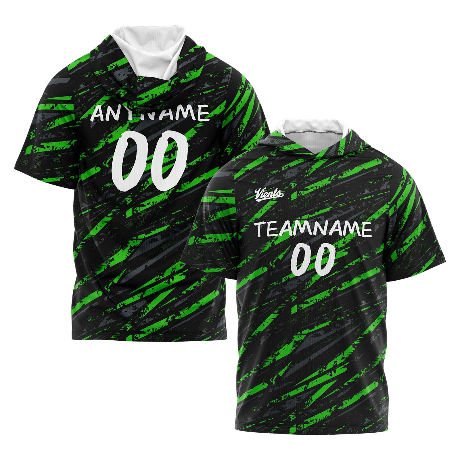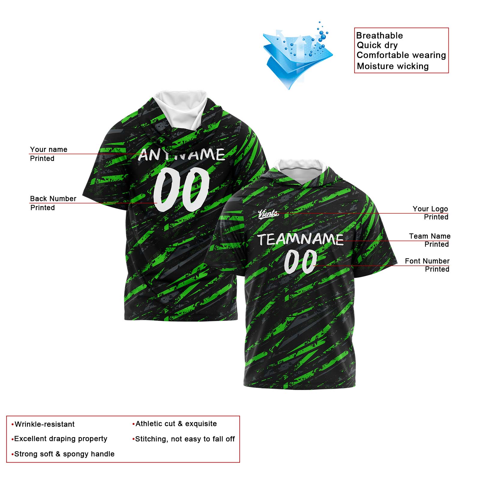 Benutzerdefinierte Schwarz Grün Kurzarm-Kapuzenpullover für Männer Frauen Hemden mit Kapuzen gedruckt Name Logo