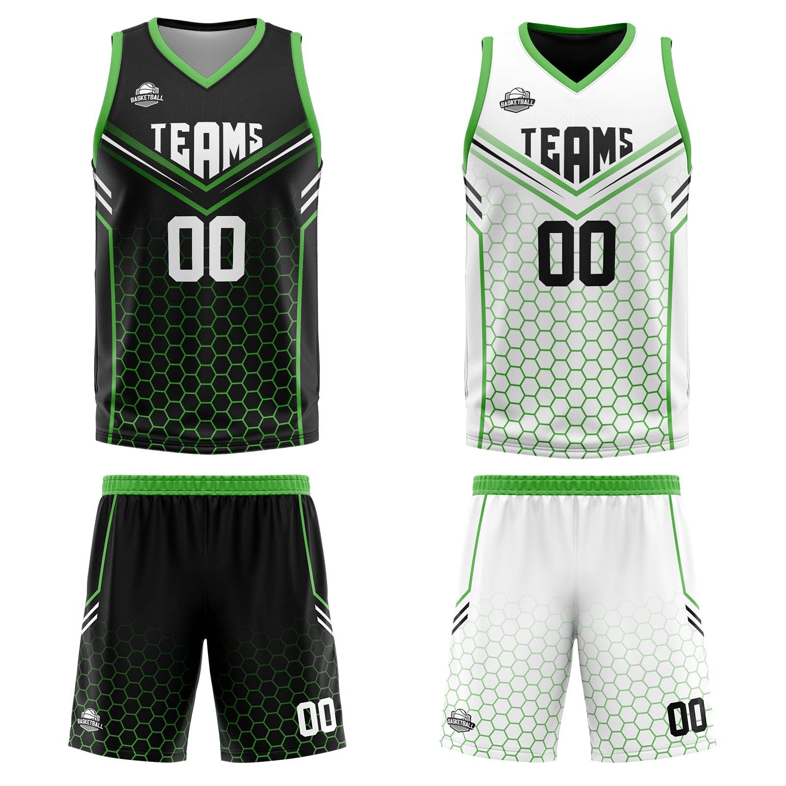 Benutzerdefinierte Schwarz Grün Reversible Basketball Jersey Personalisierte Print Name Nummer Logo