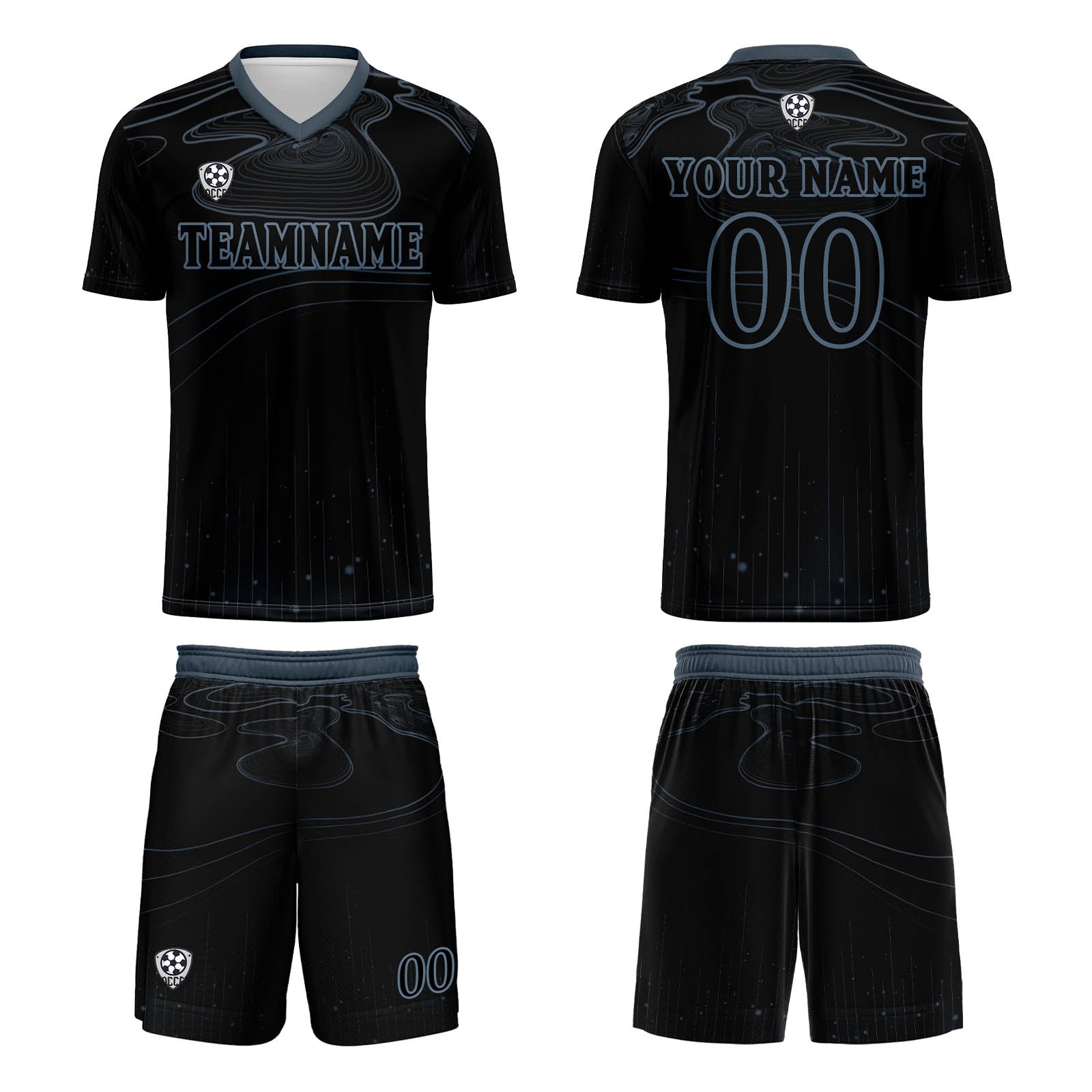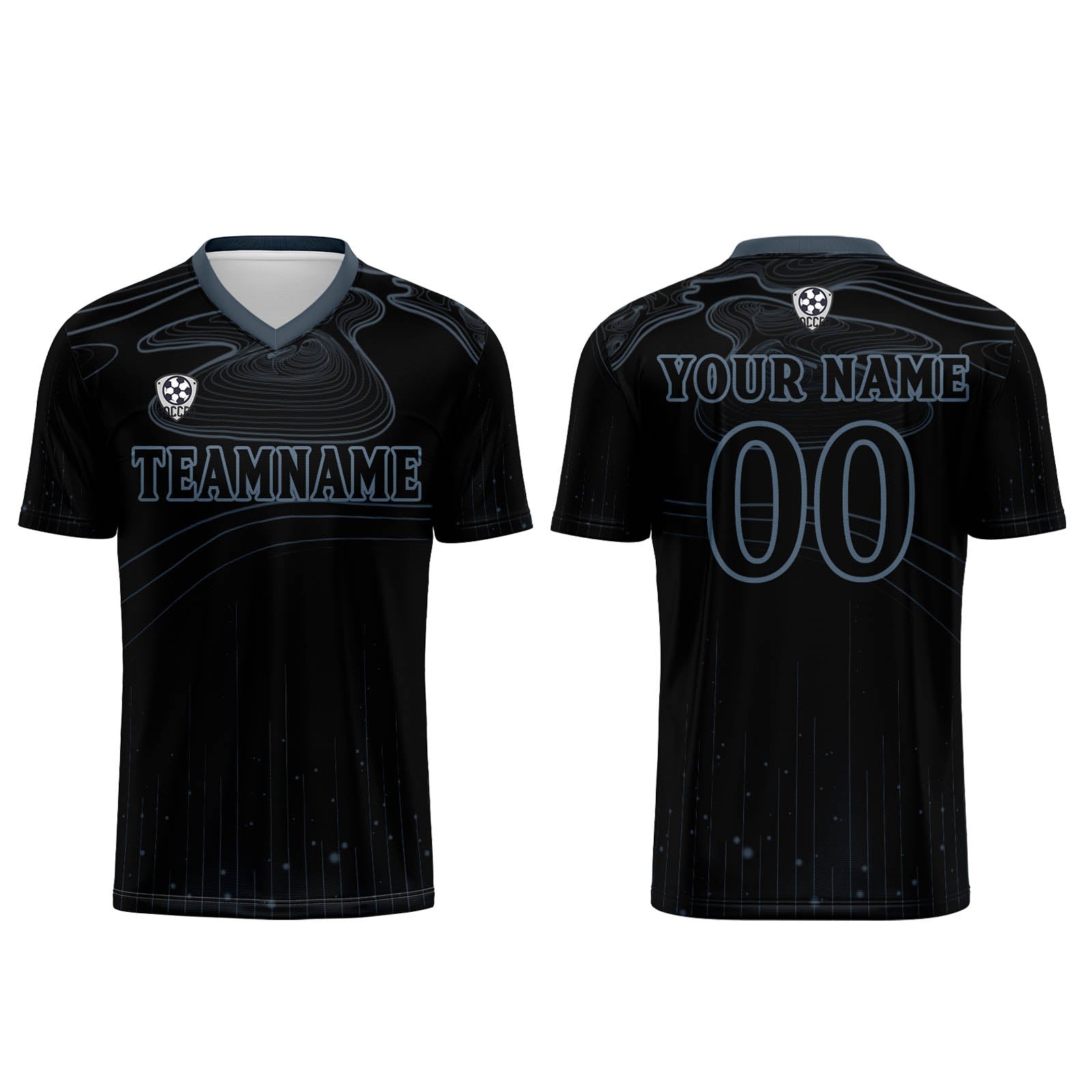 Benutzerdefinierte Schwarz Haze Blau Trikots für Männer Frauen Personalisierte Fußball Uniformen für Erwachsene und Kind