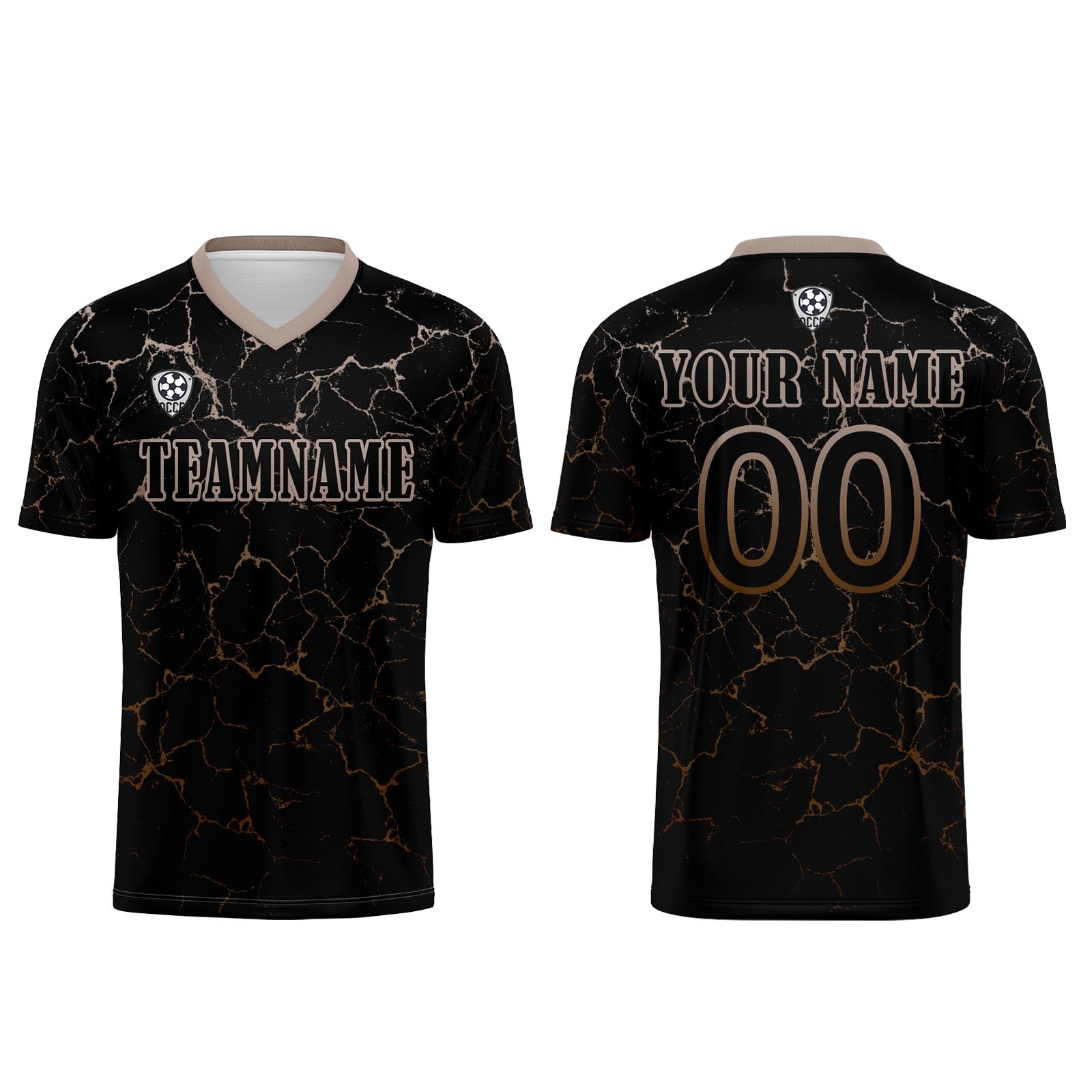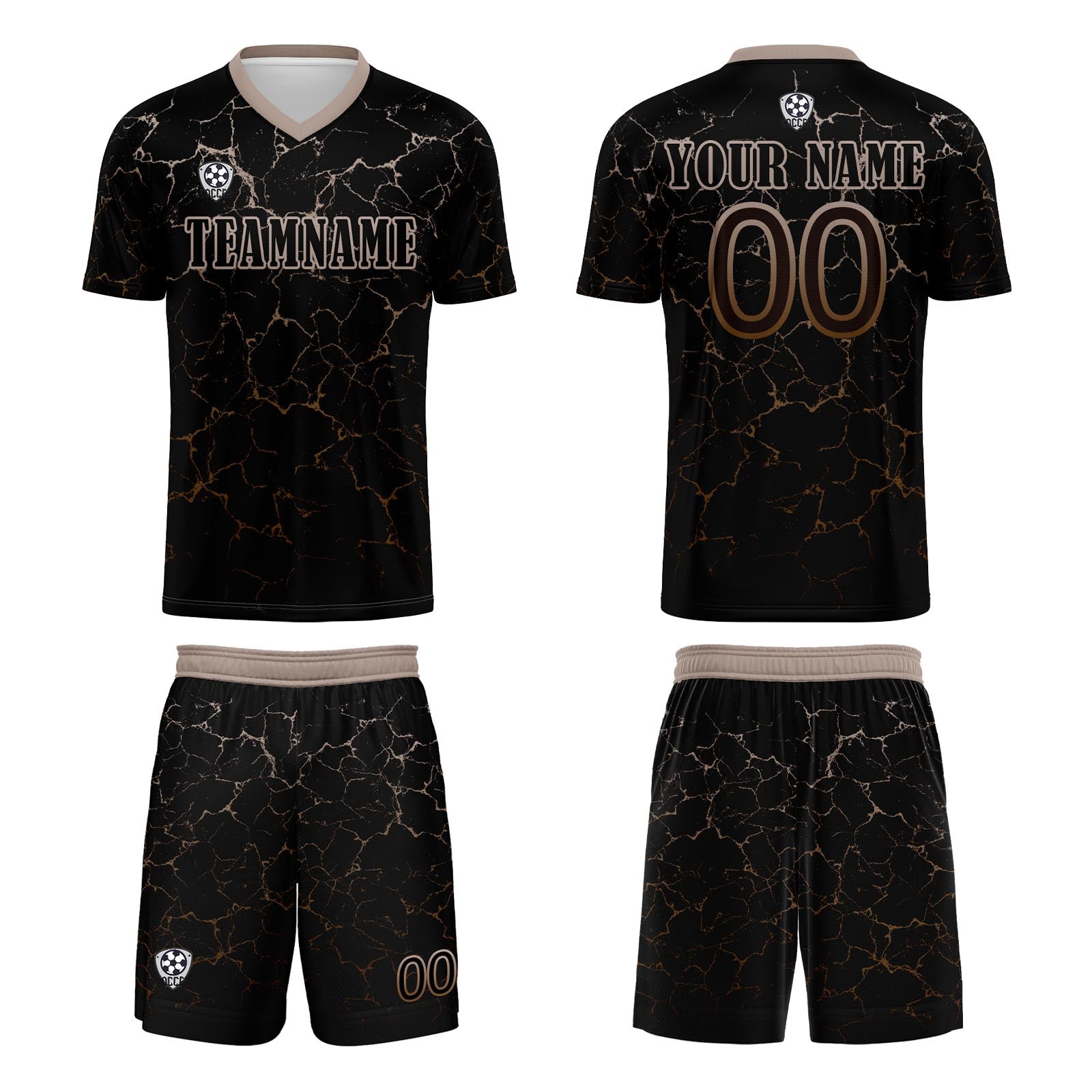 Benutzerdefinierte Schwarz Hellbraun Trikots für Männer Frauen Personalisierte Fußball Uniformen für Erwachsene und Kind