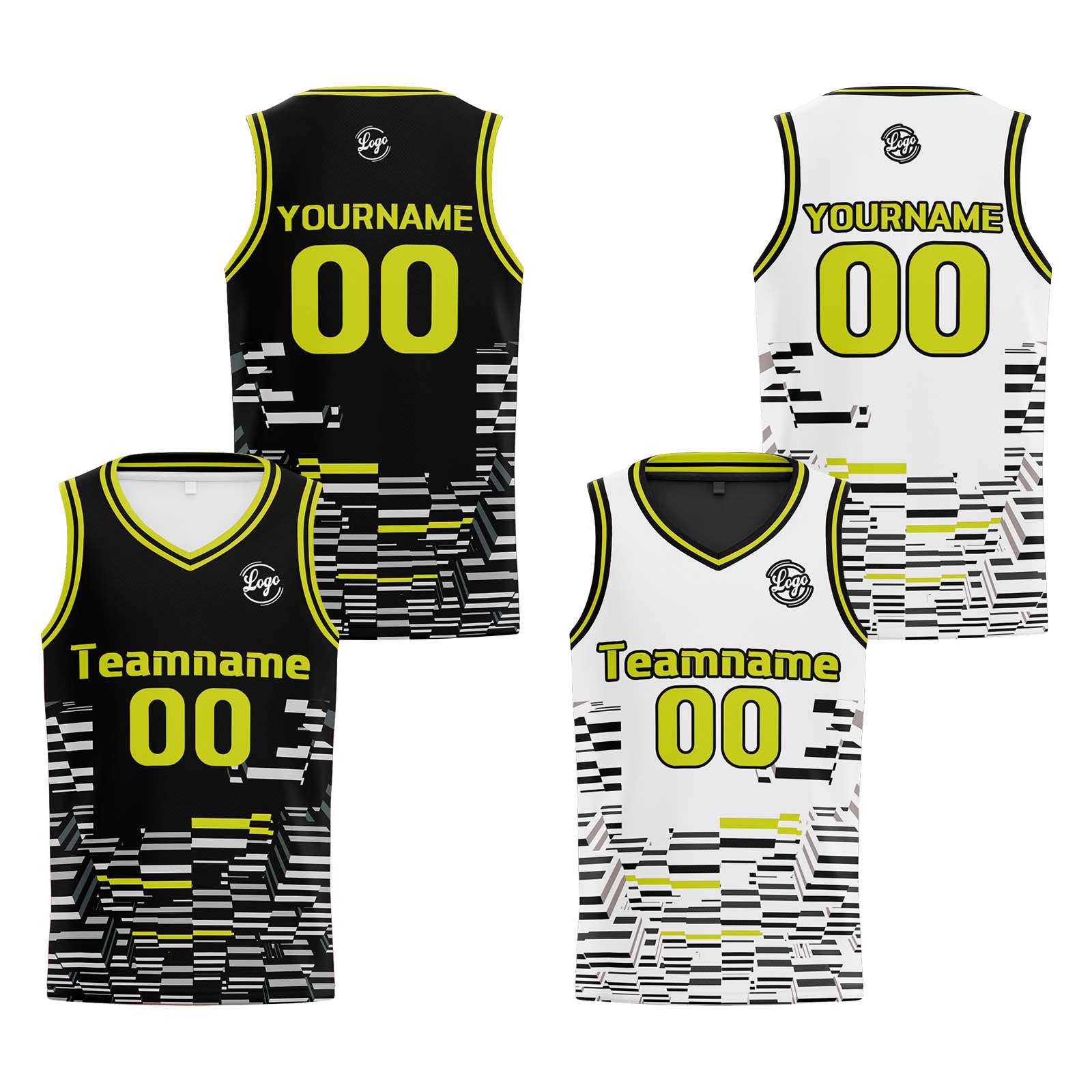 Benutzerdefinierte Schwarz Limettengrün Reversible Basketball Jersey Personalisierte Print Name Nummer Logo