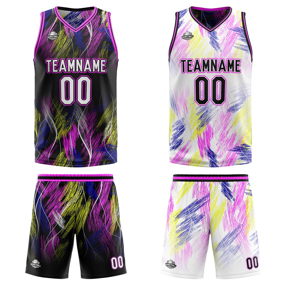 Benutzerdefinierte schwarz rosa Reversible Basketball Jersey Personalisierte Print Name Nummer Logo