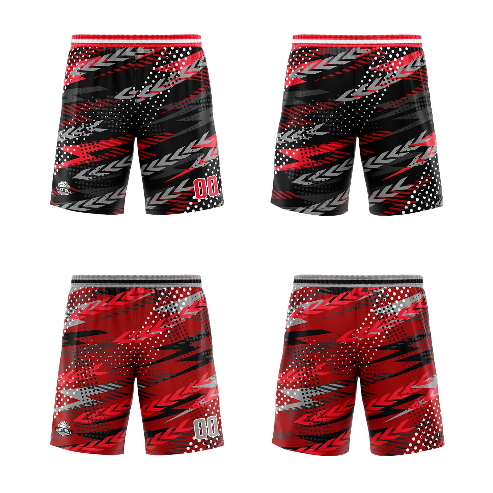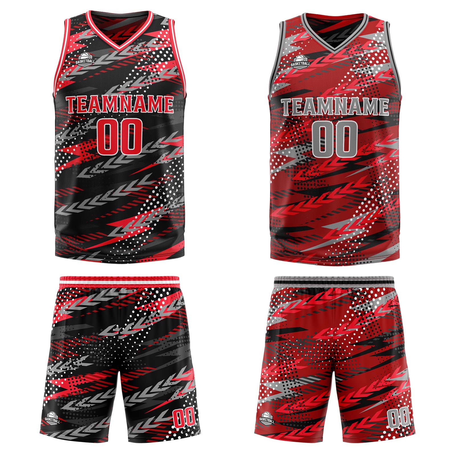 Benutzerdefinierte Schwarz Rot Grau Reversible Basketball Jersey Personalisierte Print Name Nummer Logo
