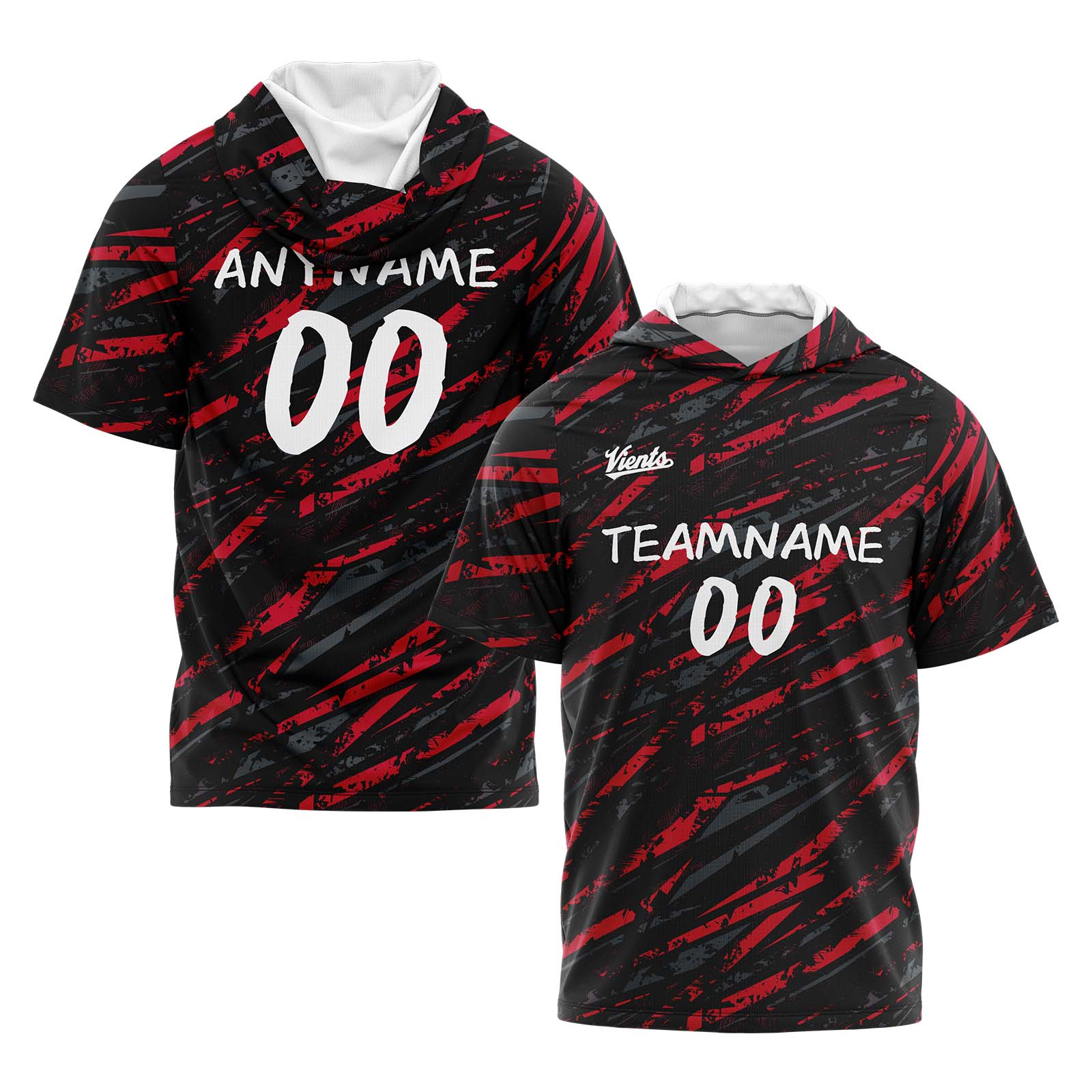 Benutzerdefinierte Schwarz Rot Kurzarm-Kapuzenpullover für Männer Frauen Hemden mit Kapuzen gedruckt Name Logo