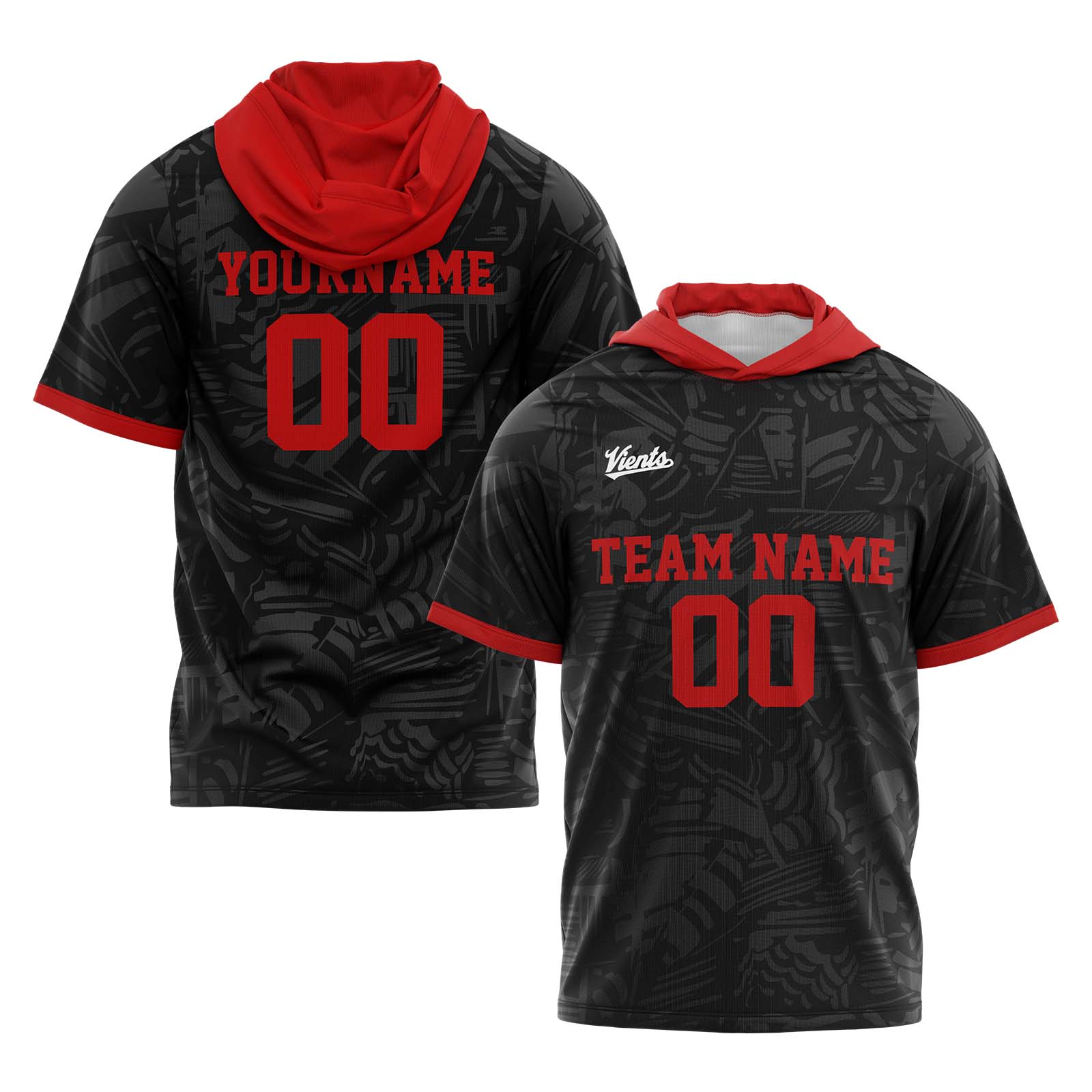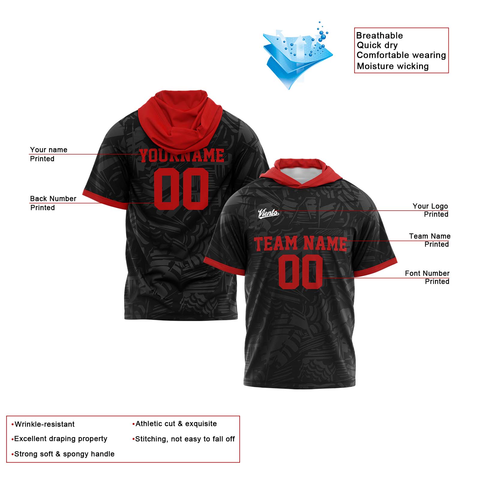 Benutzerdefinierte Schwarz Rot Kurzarm-Kapuzenpullover für Männer Frauen Hemden mit Kapuzen gedruckt Name Logo