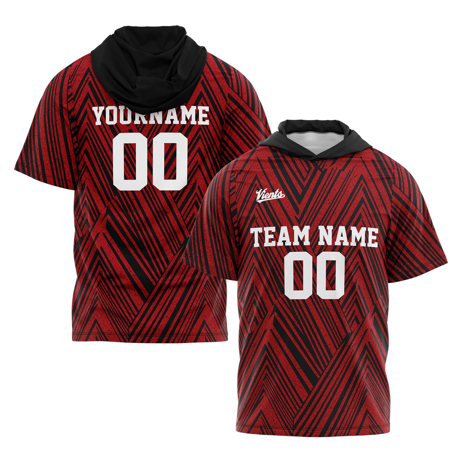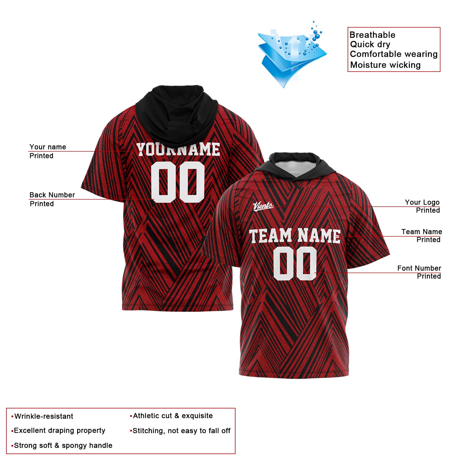 Benutzerdefinierte Schwarz Rot Kurzarm-Kapuzenpullover für Männer Frauen Hemden mit Kapuzen gedruckt Name Logo