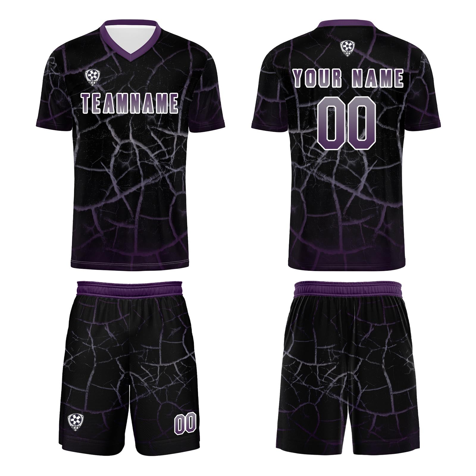Benutzerdefinierte Schwarz  Tief Lila Trikots für Männer Frauen Personalisierte Fußball Uniformen für Erwachsene und Kind