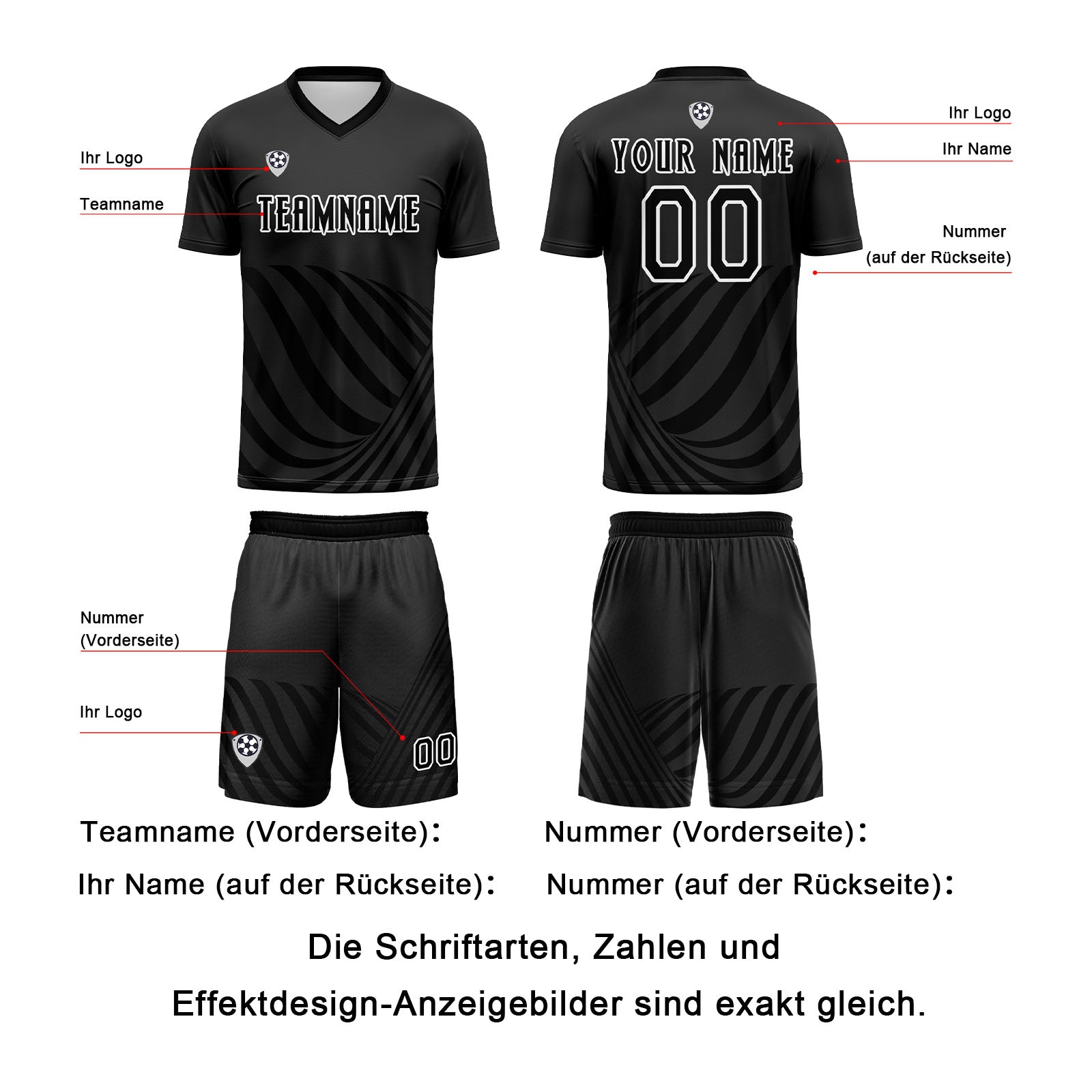 Benutzerdefinierte Schwarz Trikots für Männer Frauen Personalisierte Fußball Uniformen für Erwachsene und Kind