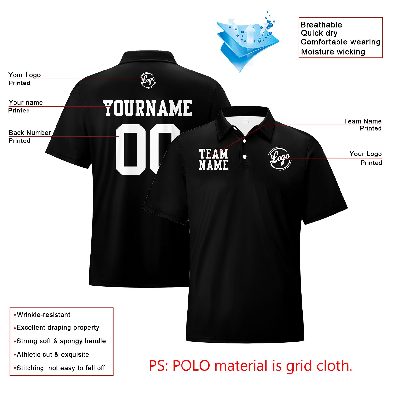 Benutzerdefinierte Schwarz Weiß Fußball Gradient Polo-Shirts Fügen Sie Ihr Einzigartiges hinzu Logo/Name/Nummer
