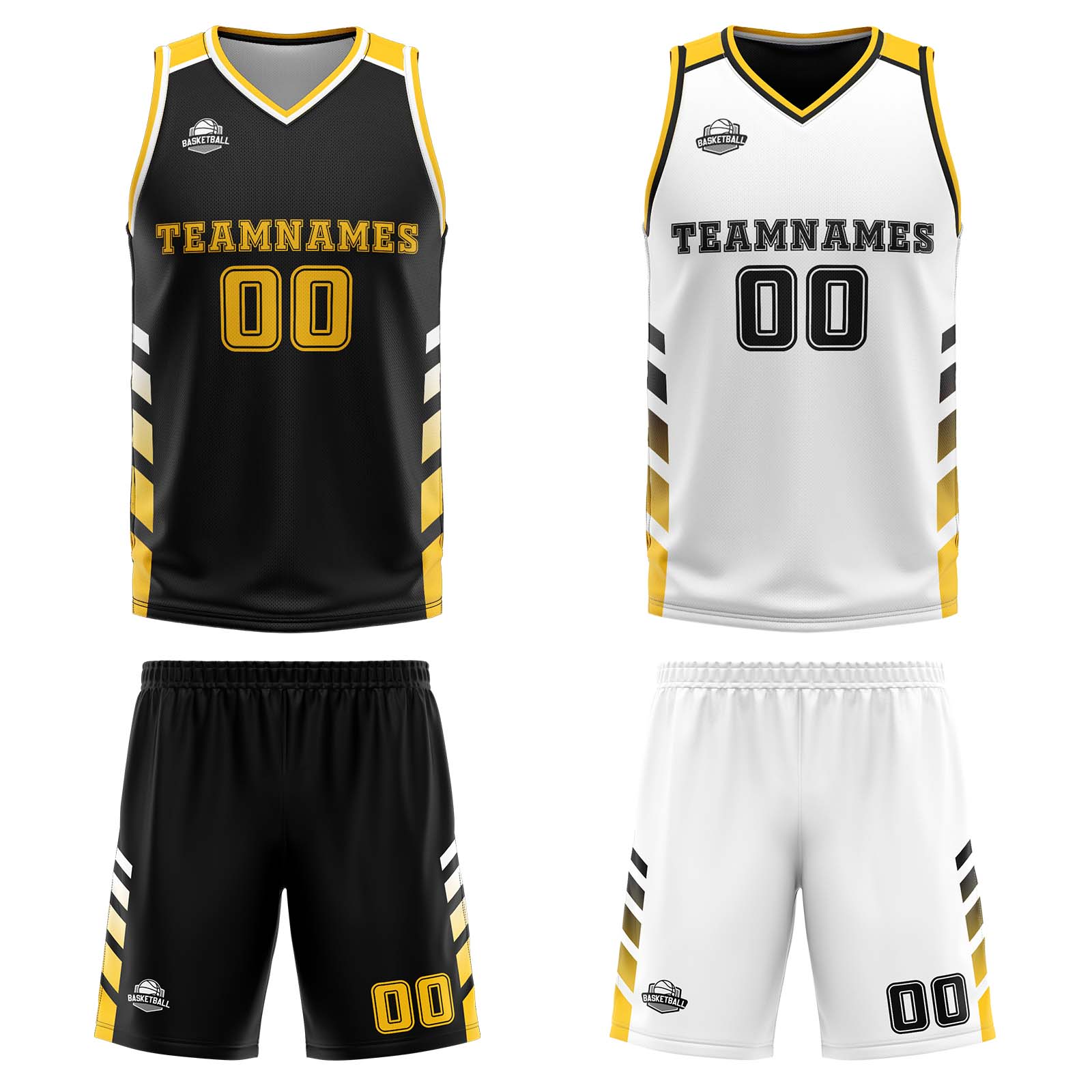 Benutzerdefinierte Schwarz Weiß Gelb Reversible Basketball Jersey Personalisierte Print Name Nummer Logo