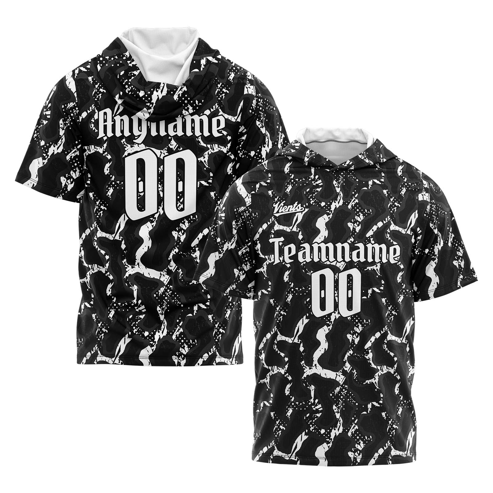 Benutzerdefinierte Schwarz Weiß Kurzarm-Kapuzenpullover für Männer Frauen Hemden mit Kapuzen gedruckt Name Logo