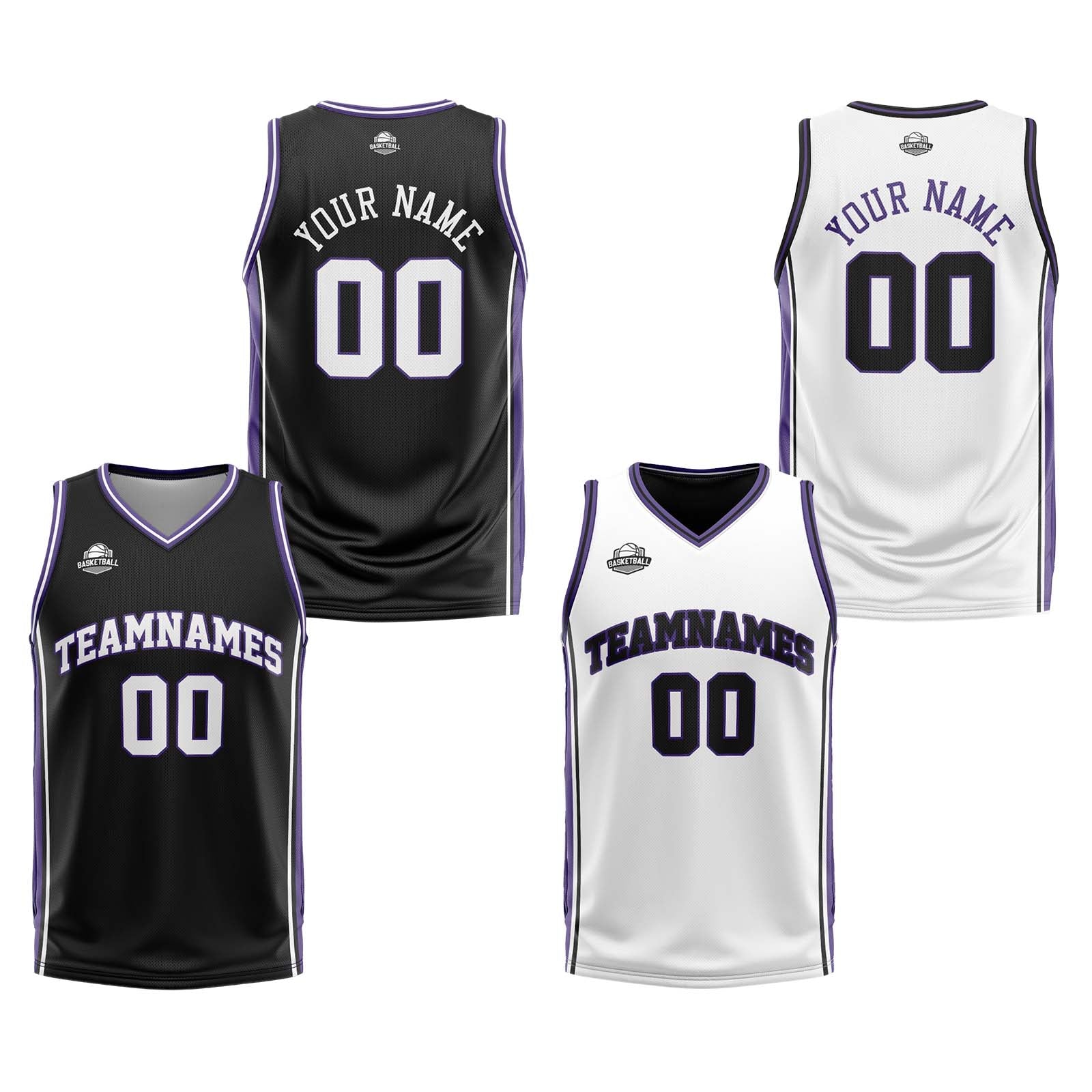 Benutzerdefinierte Schwarz Weiß Lila Reversible Basketball Jersey Personalisierte Print Name Nummer Logo
