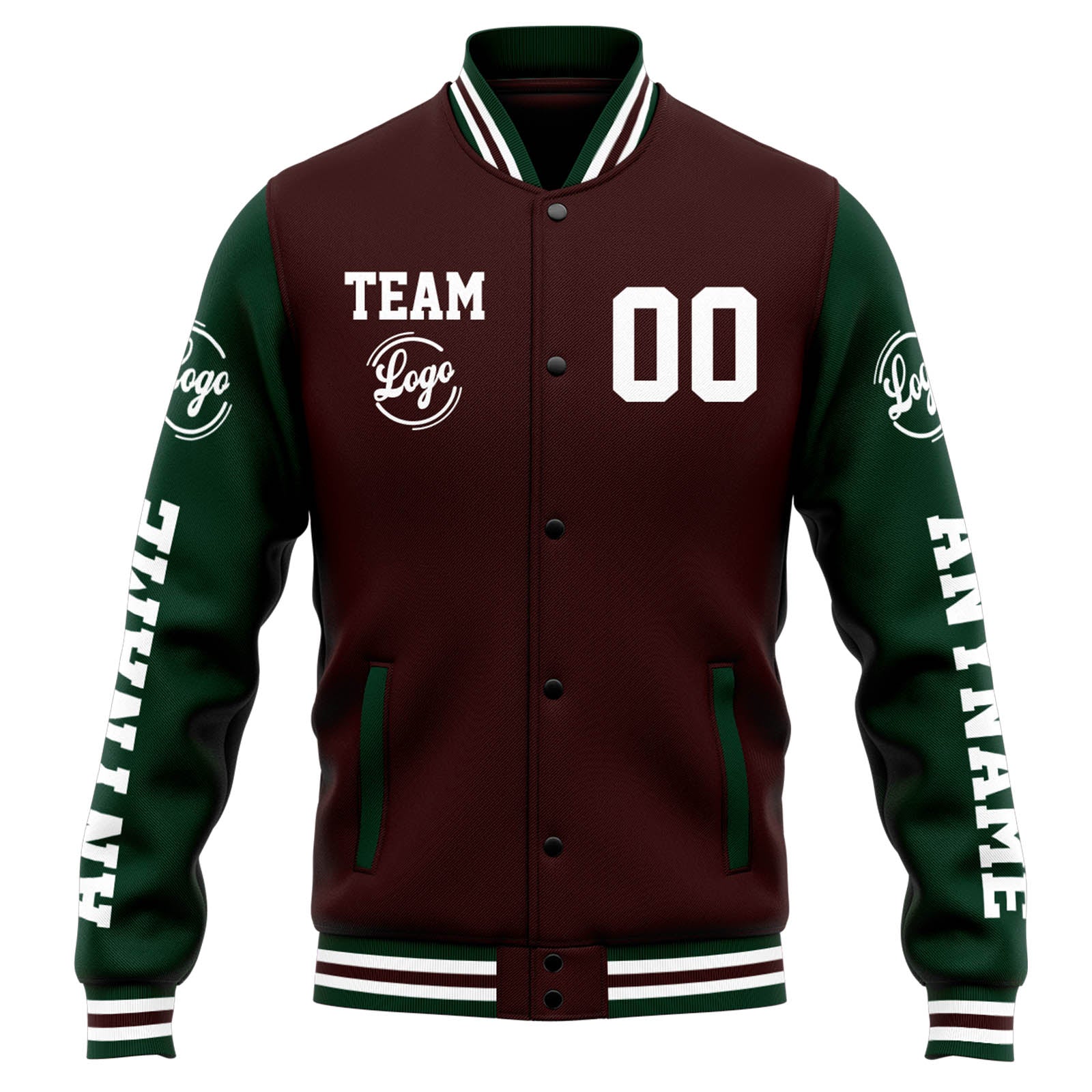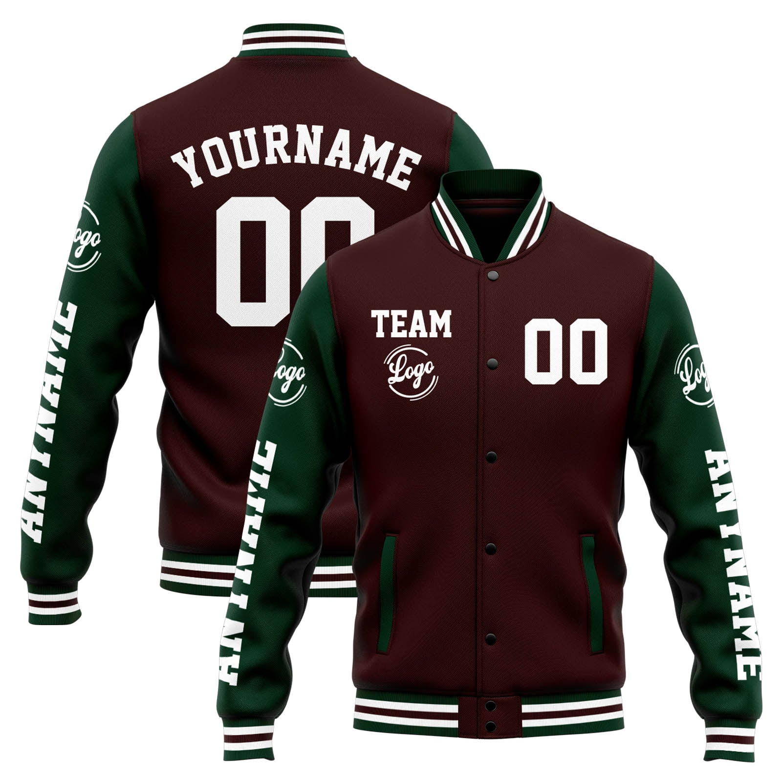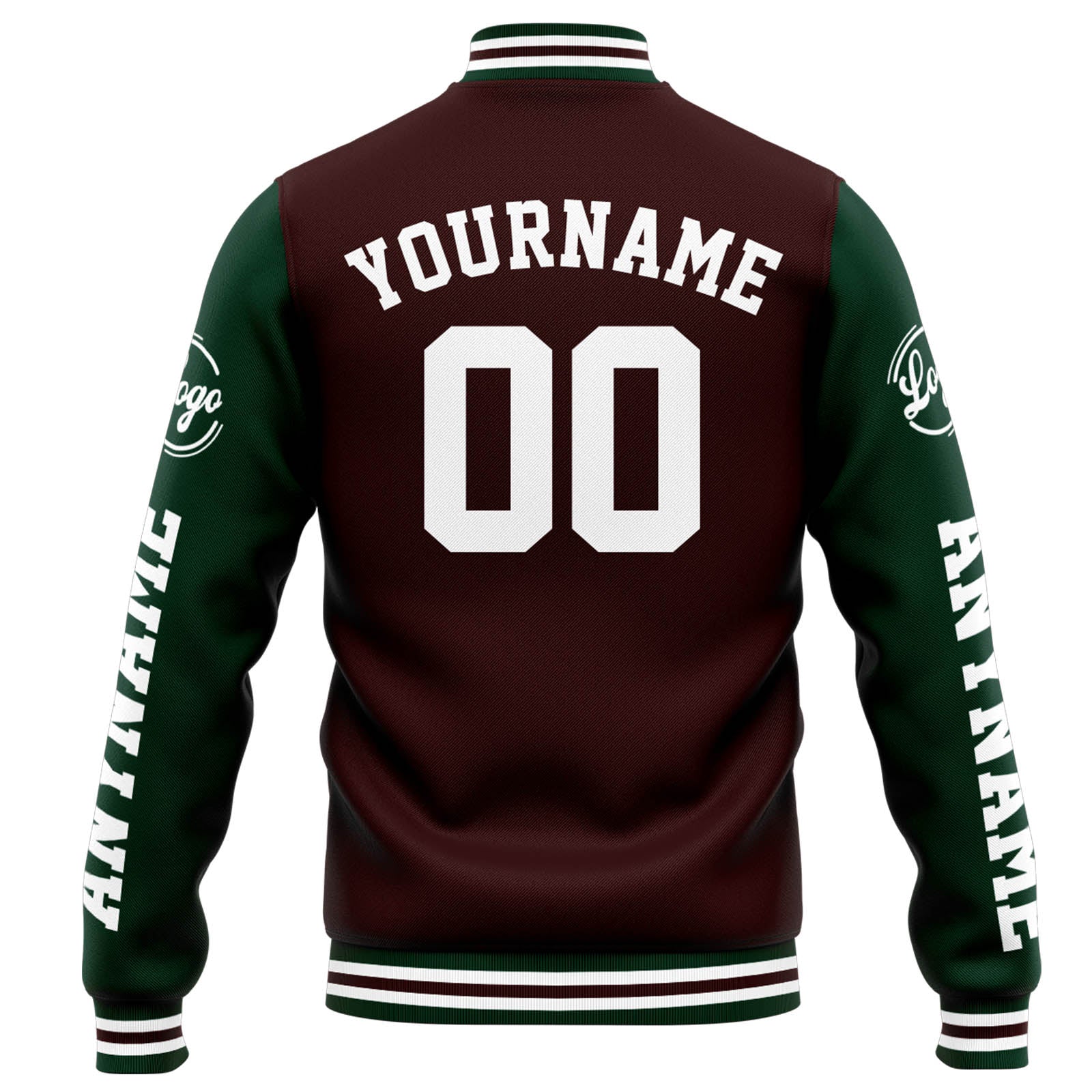 Benutzerdefinierte Varsity-Jacke. Letterman-Jacke für Männer, Frauen und Jugendliche Braun Grün