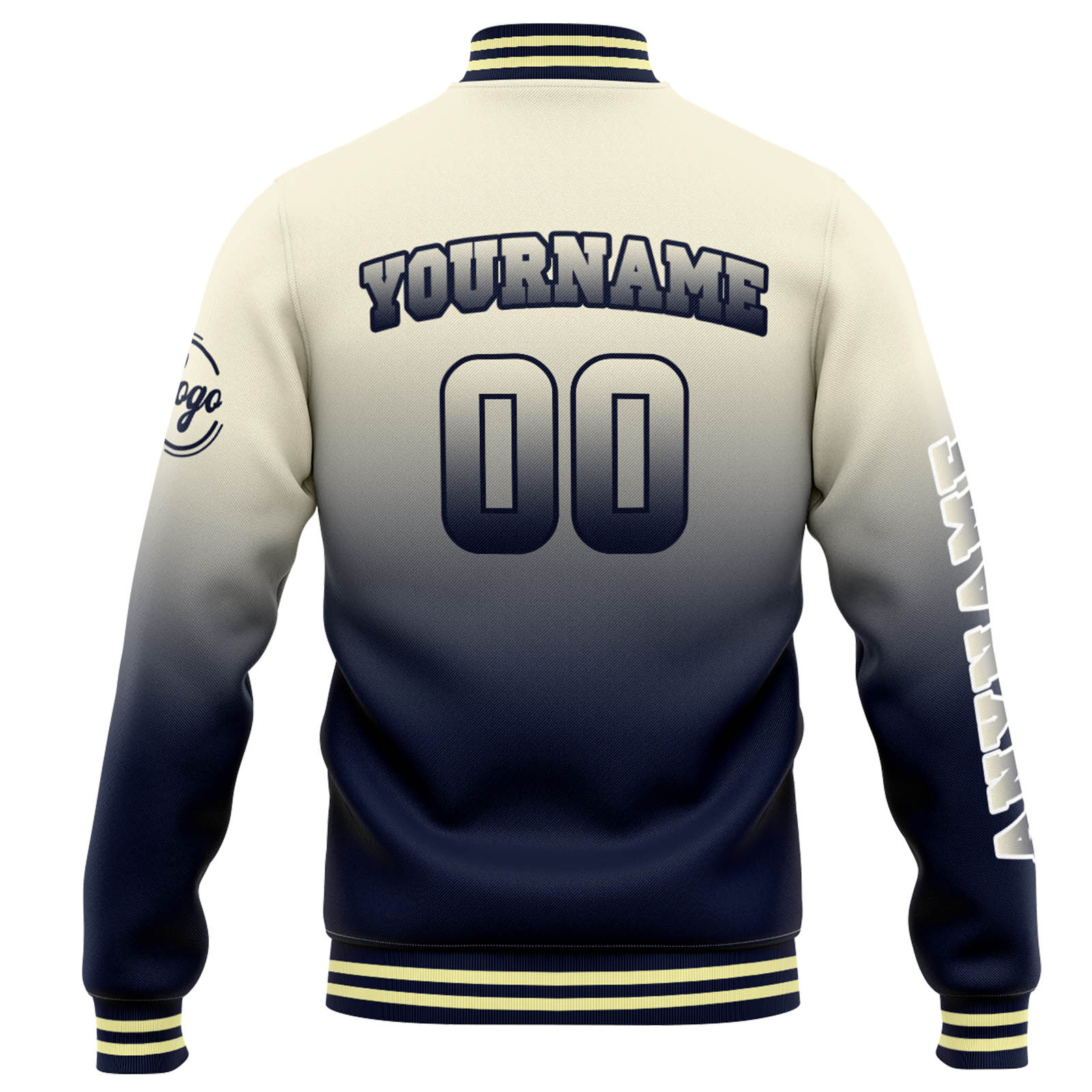 Diese Varsity-Jacke verfügt über einen personalisierten Letterman-Jacken-Stil mit gedrucktem Namen, Nummer und Logo.
