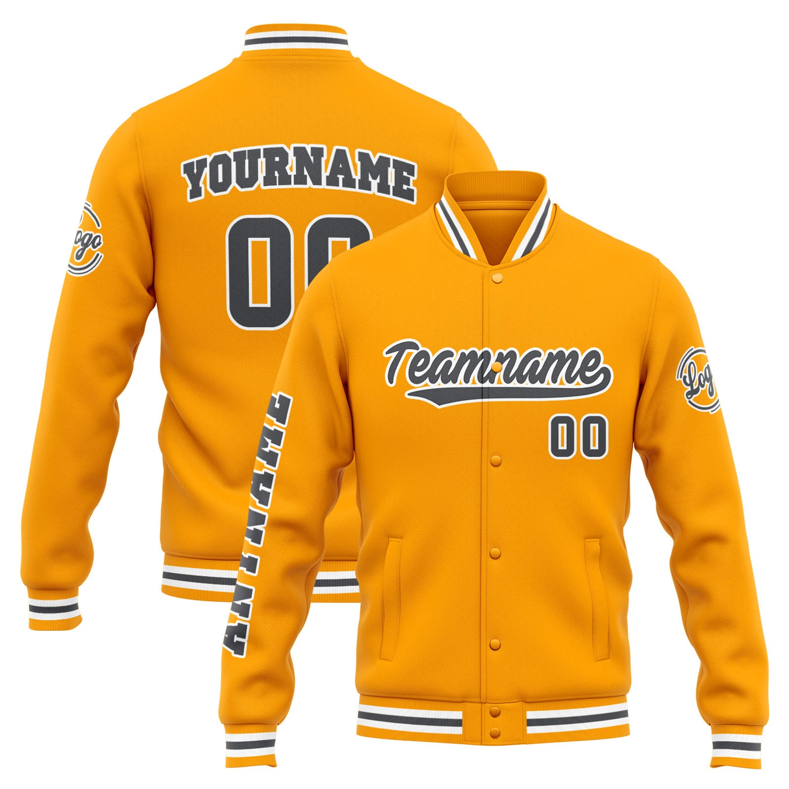 Benutzerdefinierte Varsity-Jacke. Letterman-Jacke für Männer, Frauen und Jugendliche Gelb Grau
