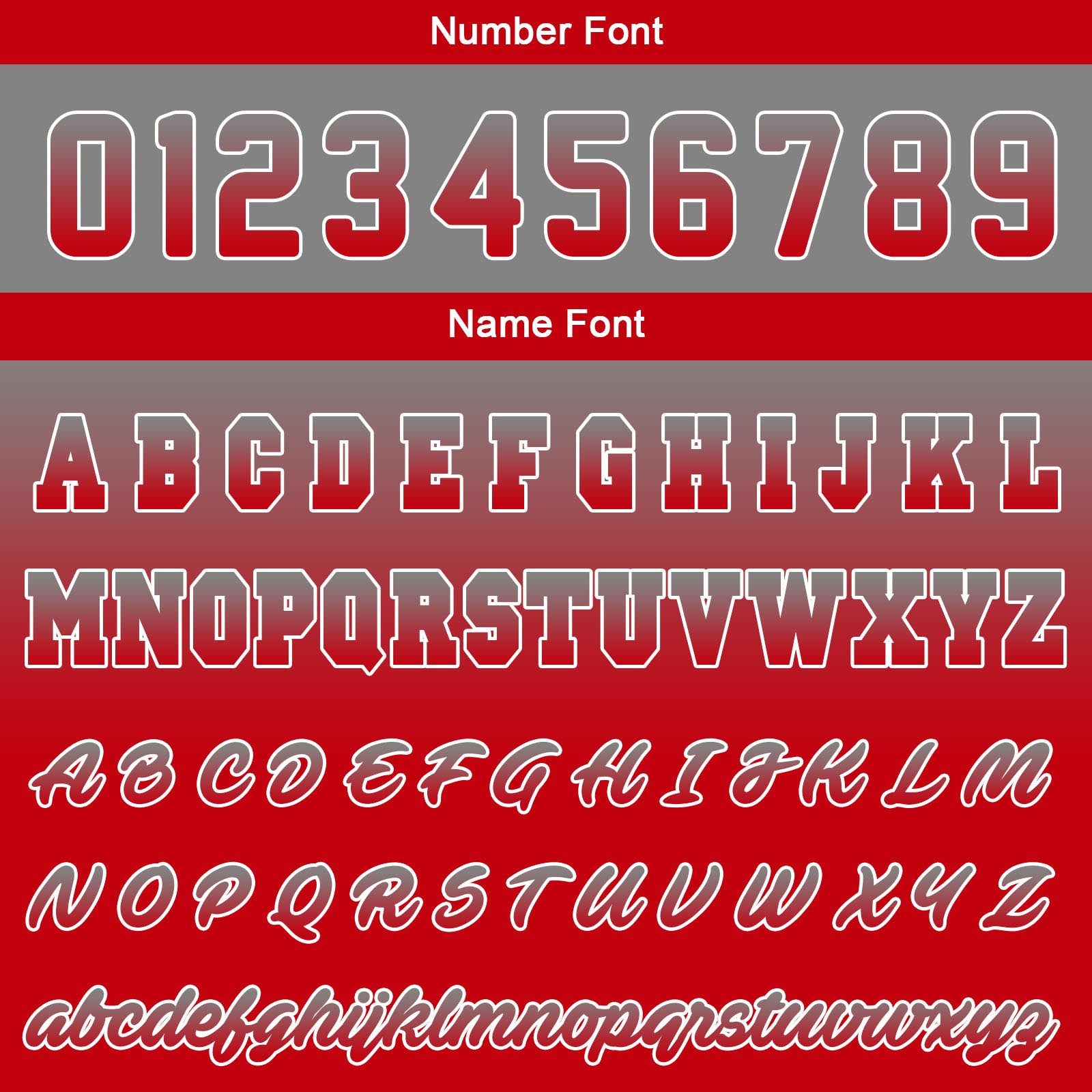 Benutzerdefinierte Varsity-Jacke. Letterman-Jacke für Männer, Frauen und Jugendliche Grau Rot Verlauf