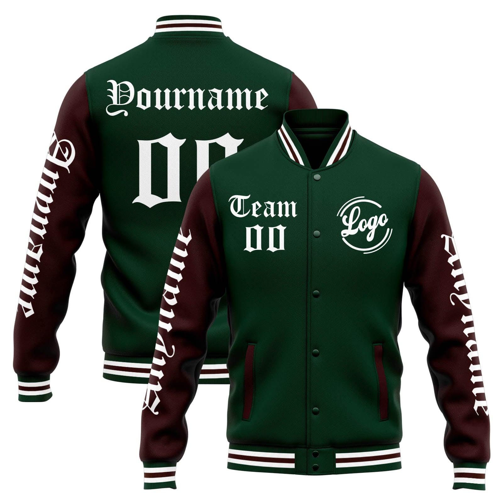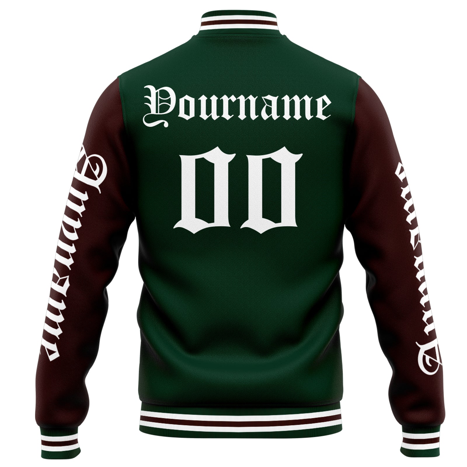 Benutzerdefinierte Varsity-Jacke. Letterman-Jacke für Männer, Frauen und Jugendliche Grün Braun