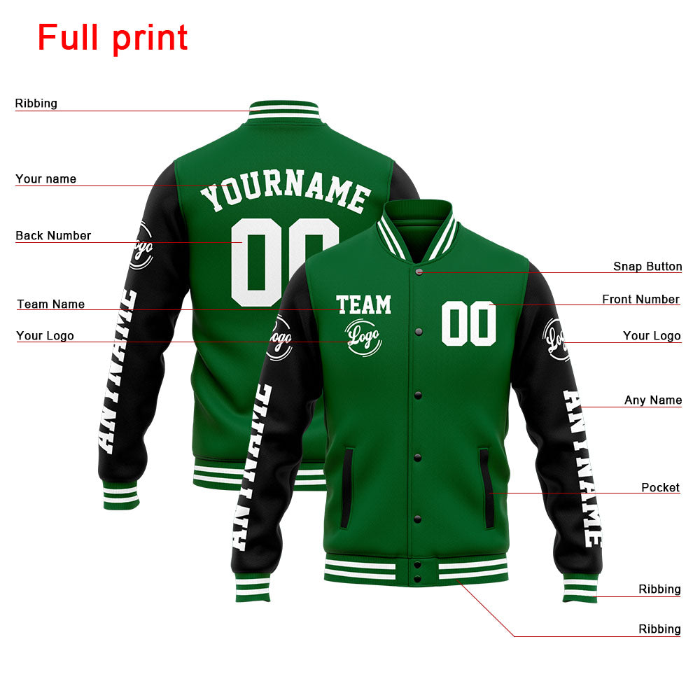 Benutzerdefinierte Varsity-Jacke. Letterman-Jacke für Männer, Frauen und Jugendliche Grün Schwarz