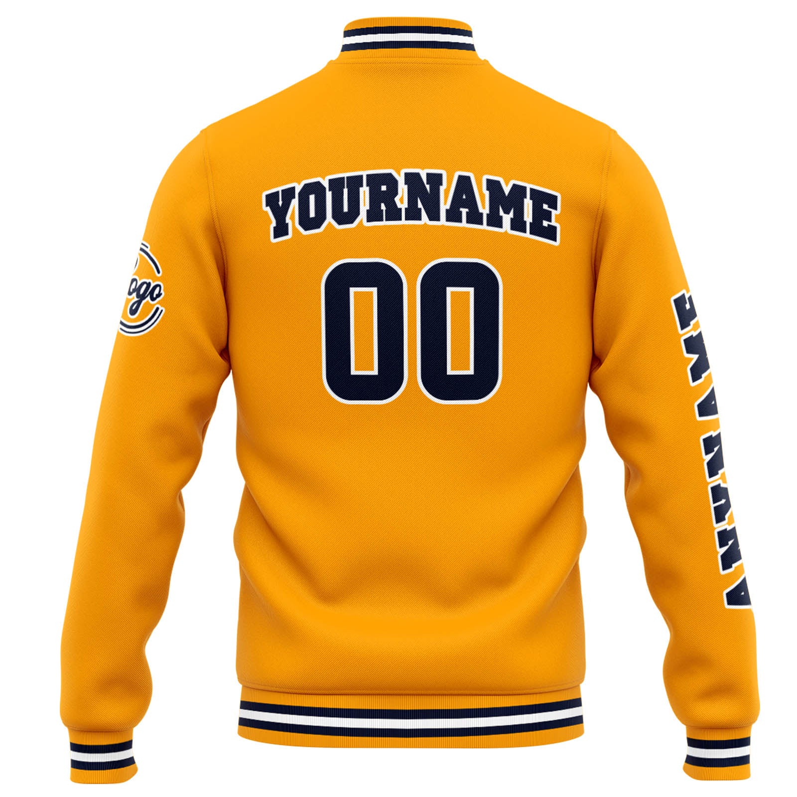 Diese Varsity-Jacke verfügt über einen personalisierten Letterman-Jacken-Stil mit gedrucktem Namen, Nummer und Logo.