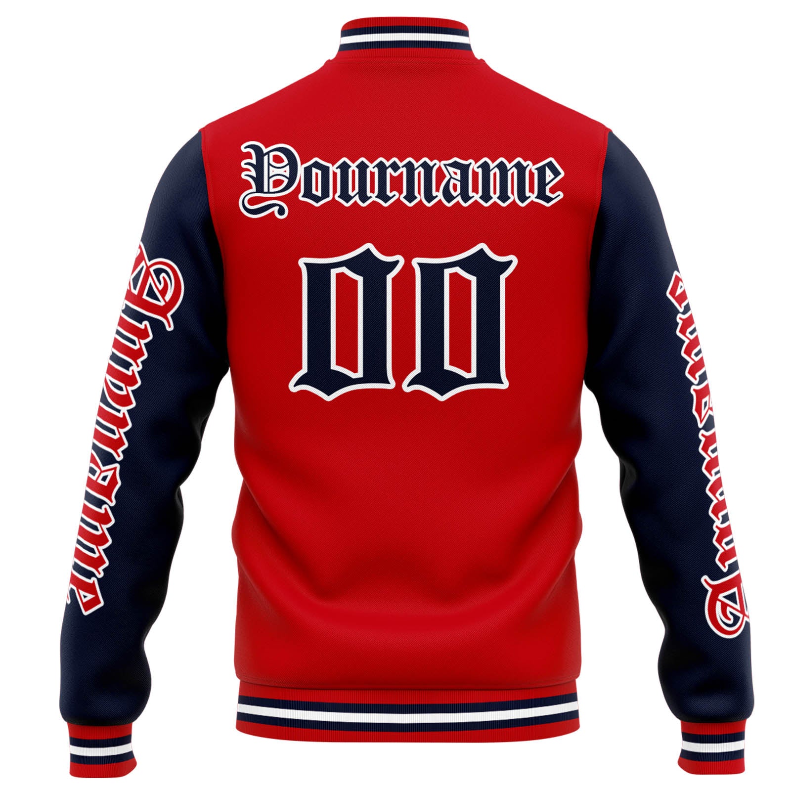Benutzerdefinierte Varsity-Jacke. Letterman-Jacke für Männer, Frauen und Jugendliche Rot Marine