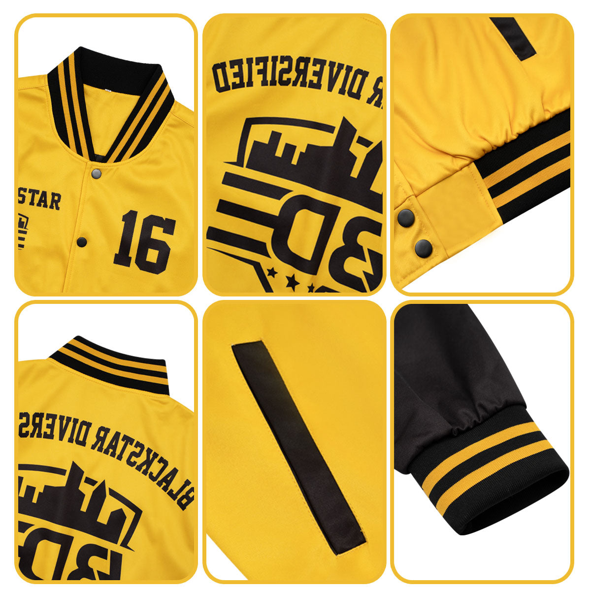 Benutzerdefinierte Varsity-Jacke. Letterman-Jacke für Männer, Frauen und Jugendliche Schwarz Weiß