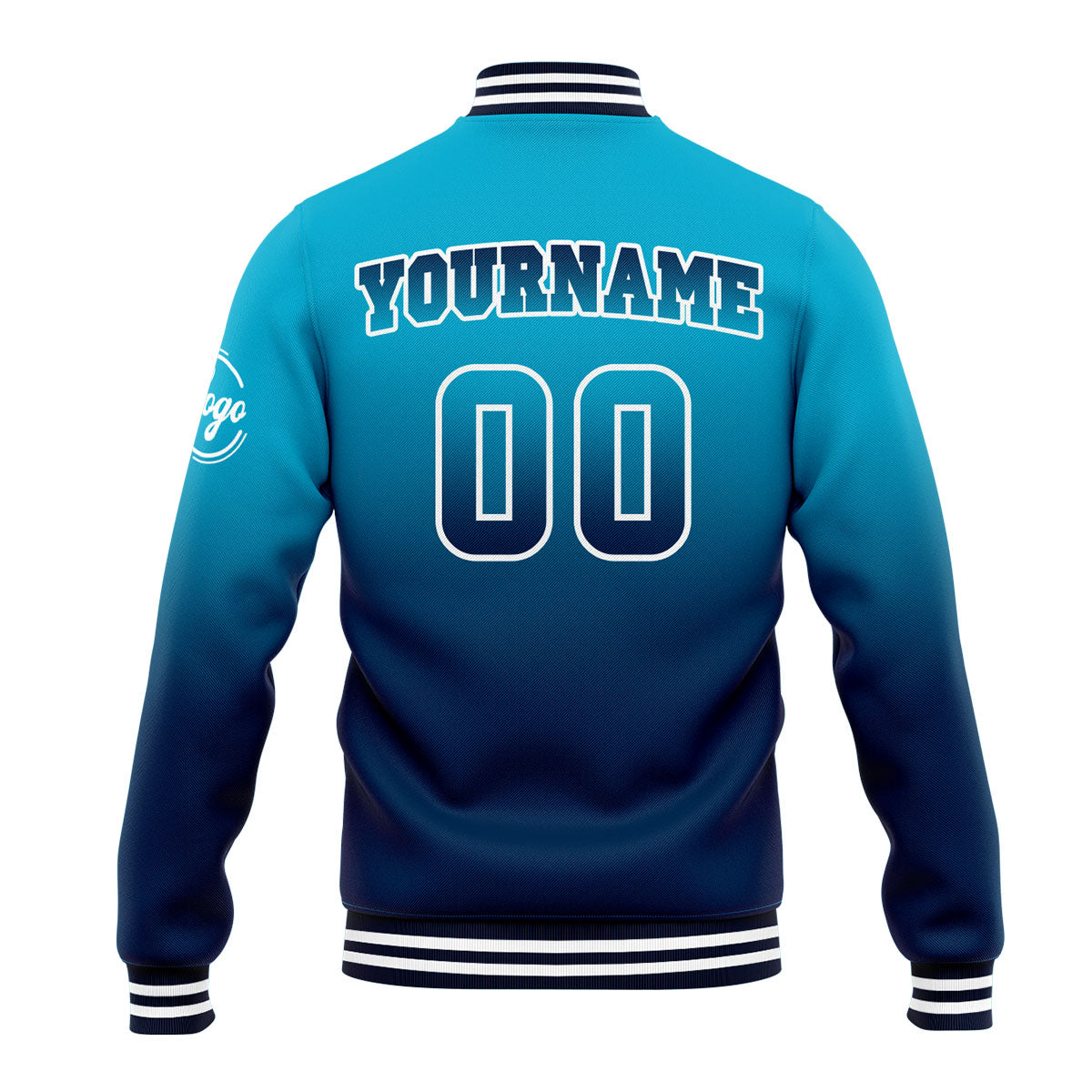 Benutzerdefinierte Verlauf Varsity-Jacke. Letterman-Jacke Aqua Dunkelblau