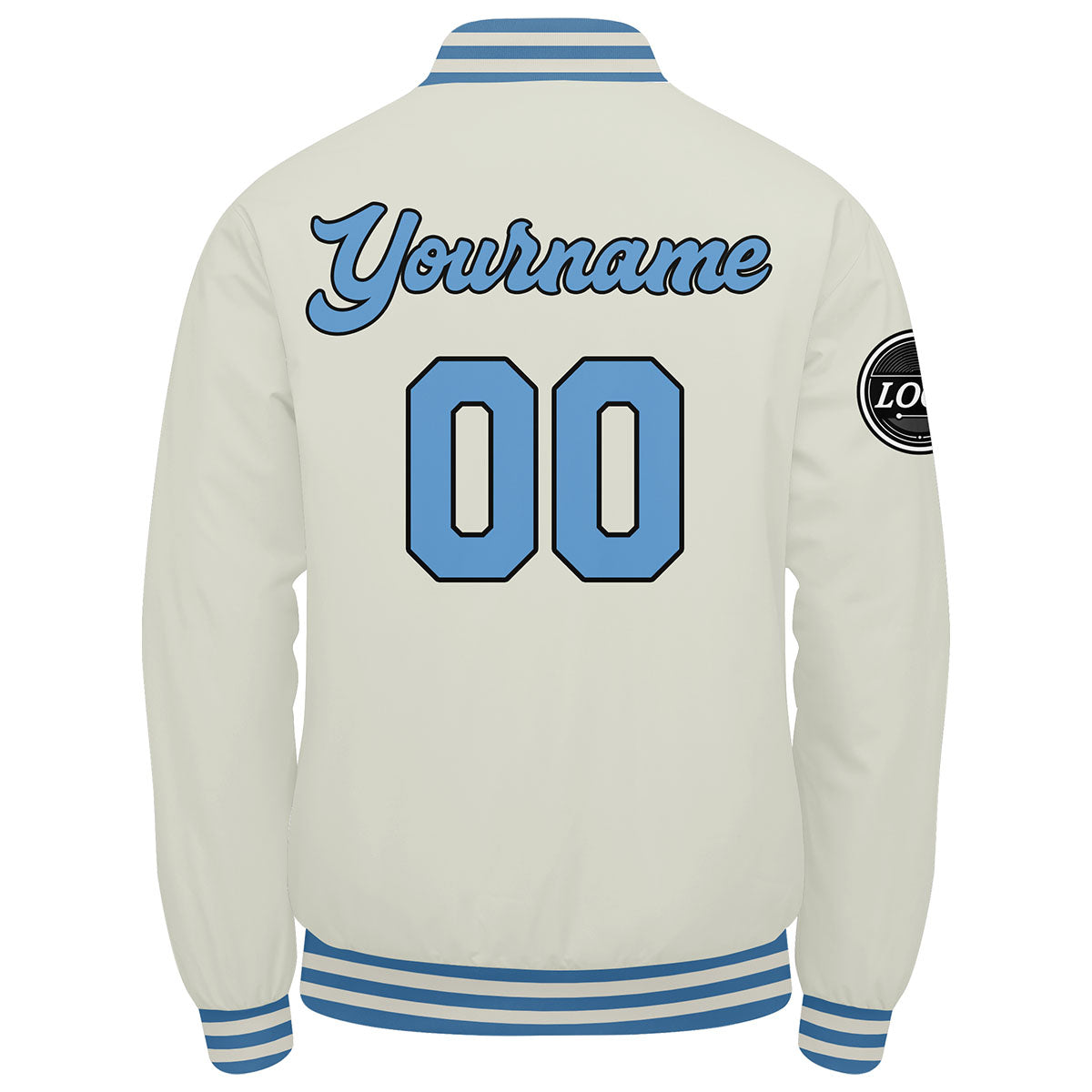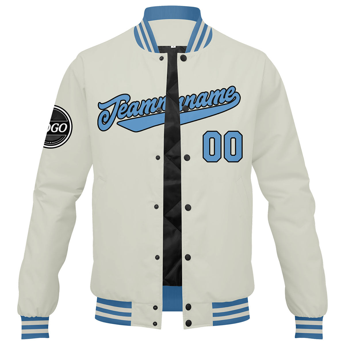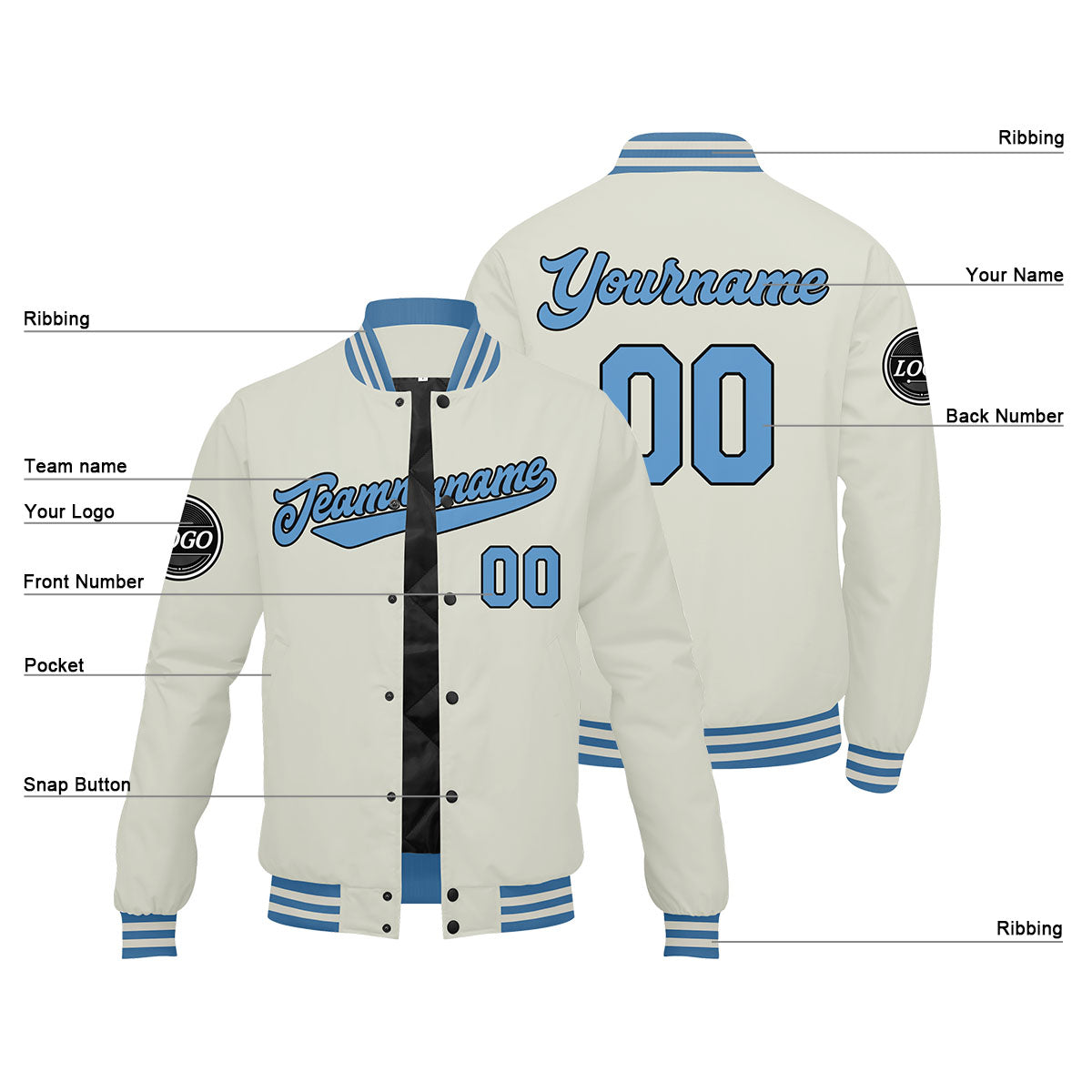 Benutzerdefinierte Verlauf Varsity-Jacke. Letterman-Jacke Creme Hellblau