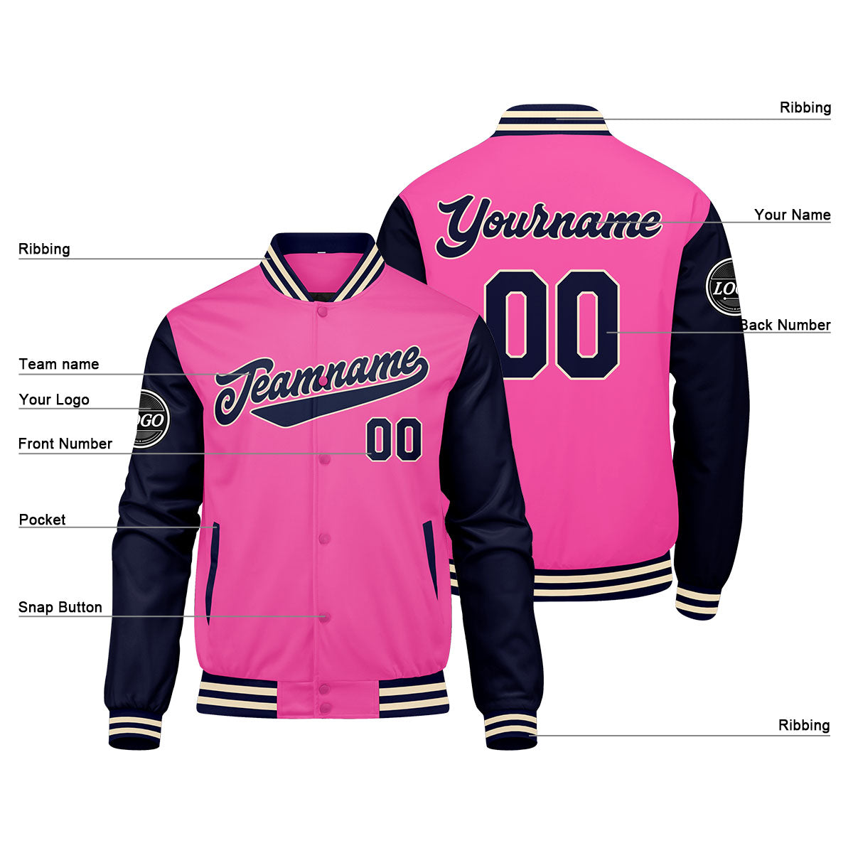 Benutzerdefinierte Verlauf Varsity-Jacke. Letterman-Jacke Dunkelgrün Rosa Marine
