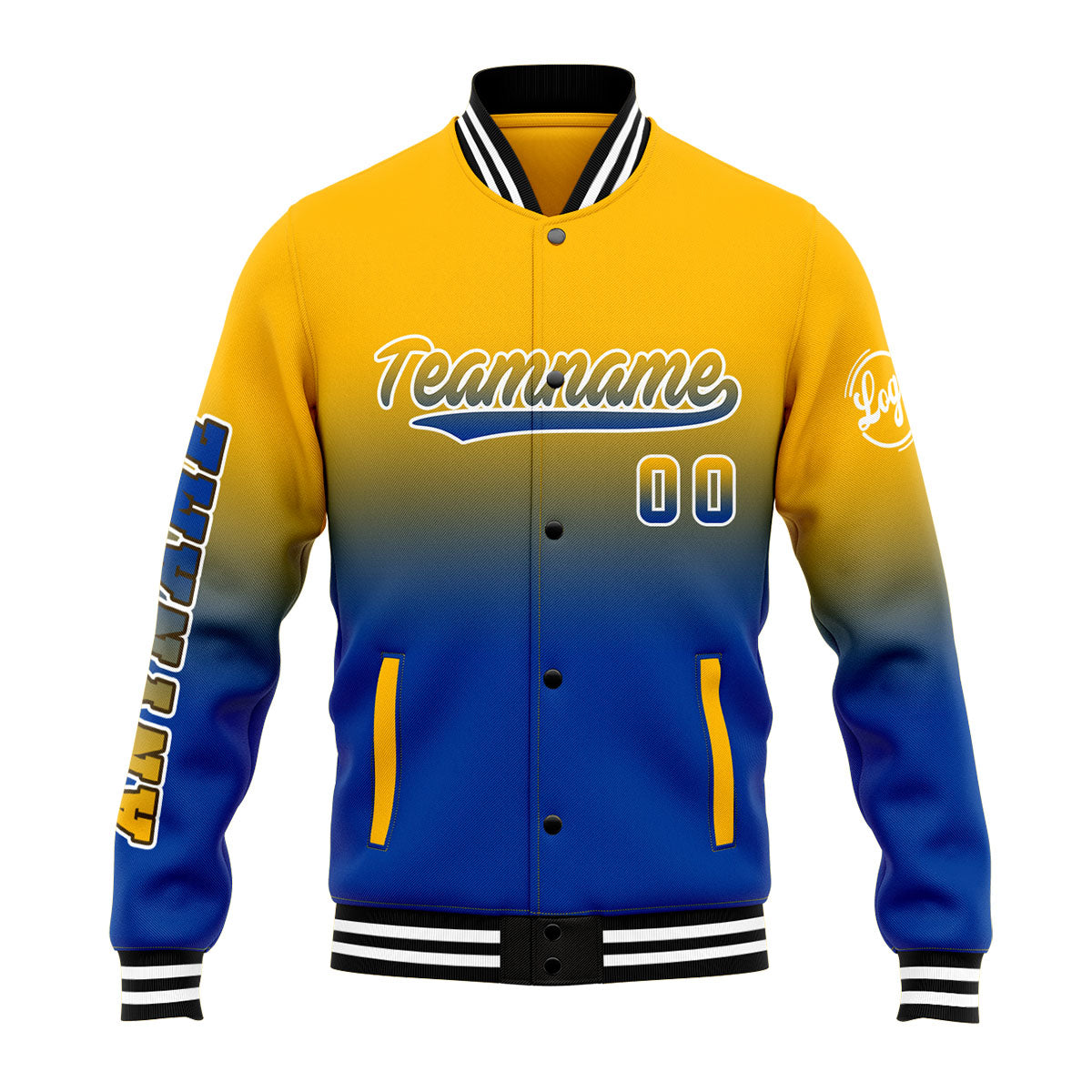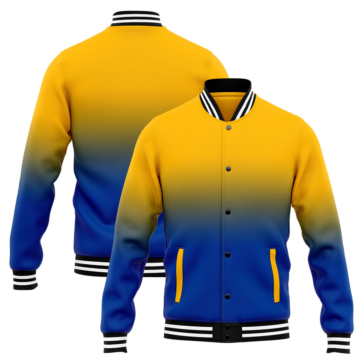 Benutzerdefinierte Verlauf Varsity-Jacke. Letterman-Jacke Gelb Blau