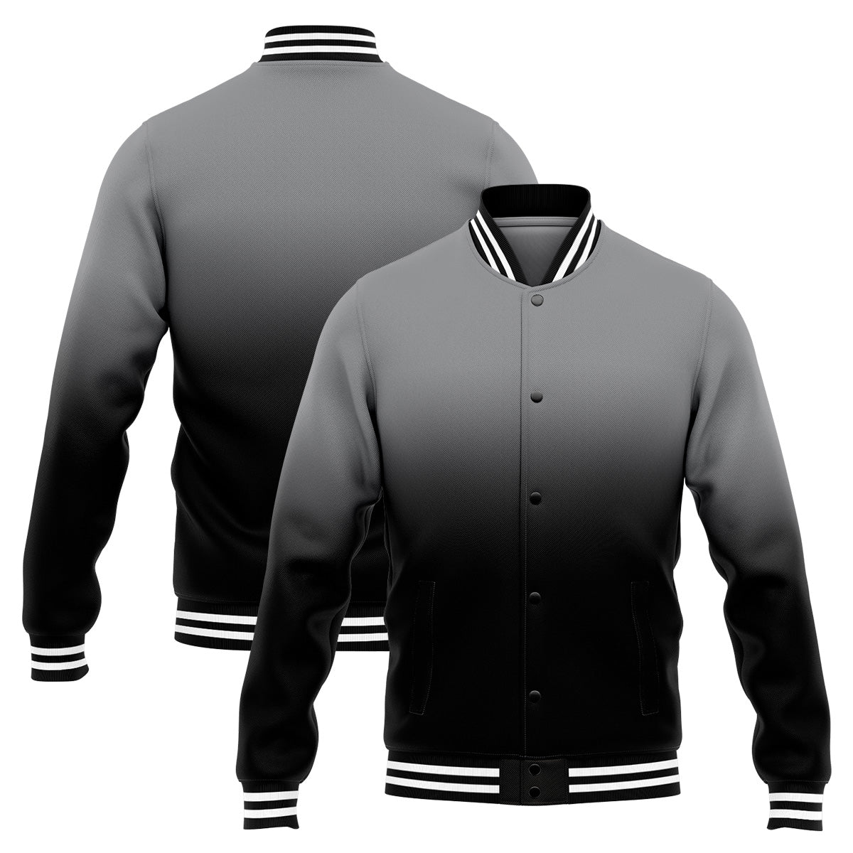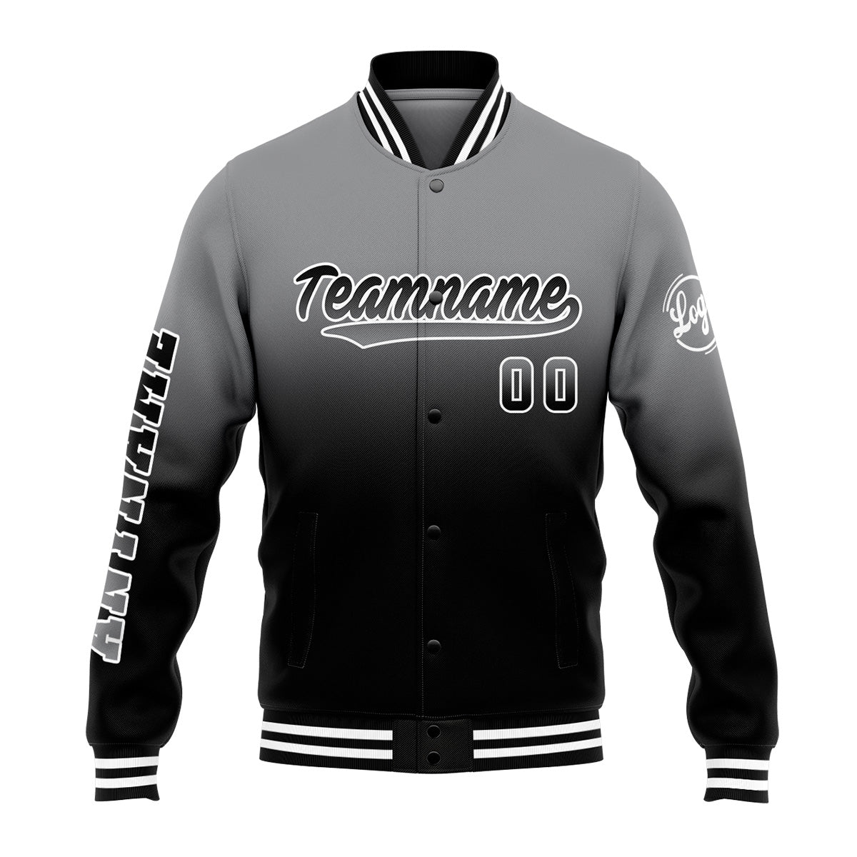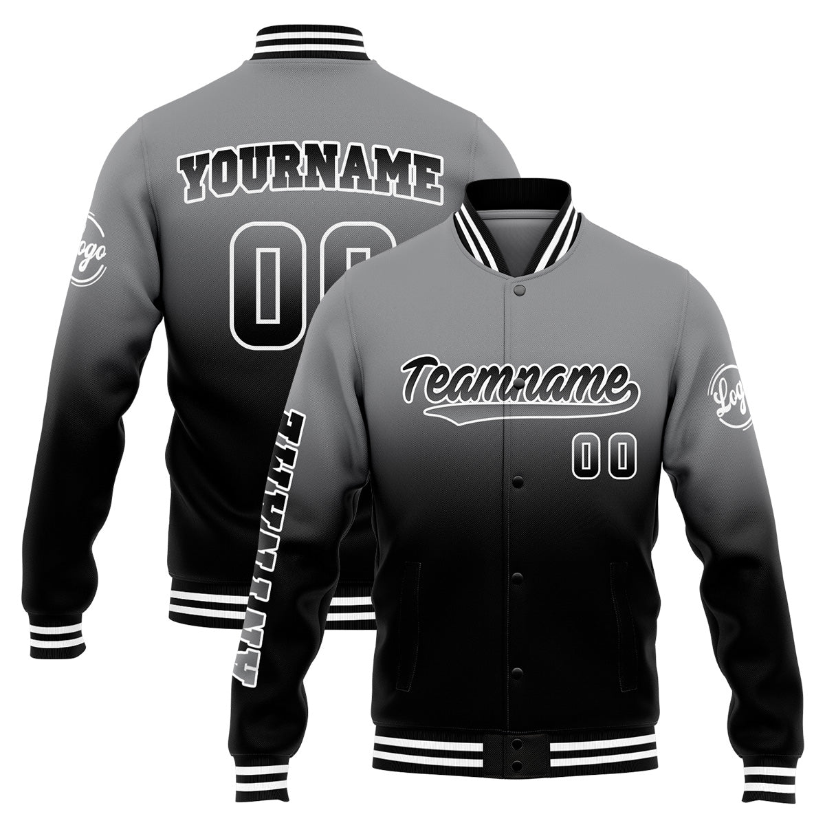 Diese Varsity-Jacke verfügt über einen personalisierten Letterman-Jacken-Stil mit gedrucktem Namen, Nummer und Logo.