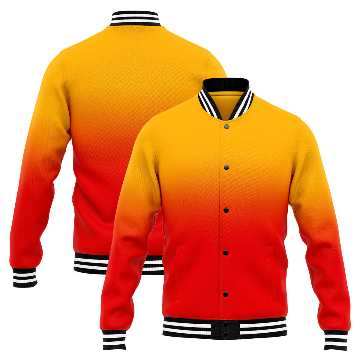 Benutzerdefinierte Verlauf Varsity-Jacke. Letterman-Jacke Hellorange Rot
