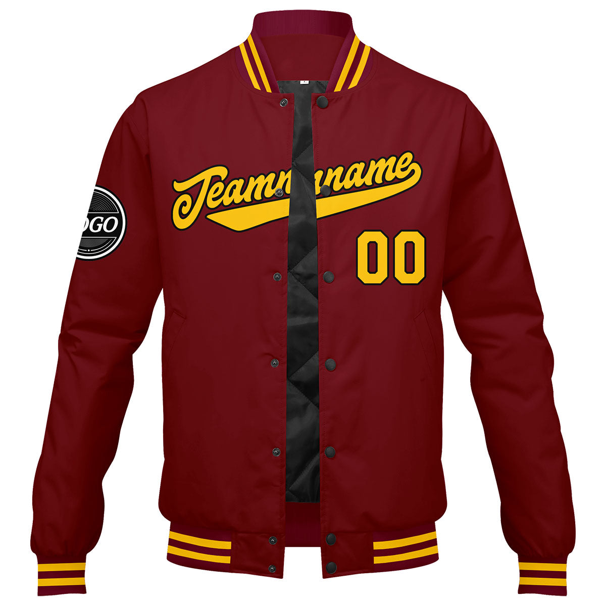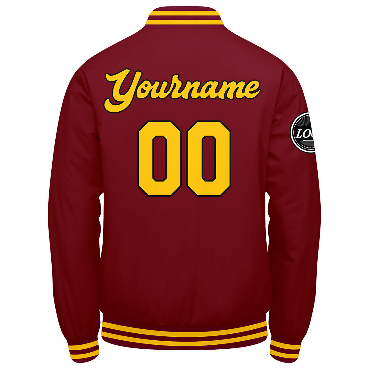 Benutzerdefinierte Verlauf Varsity-Jacke. Letterman-Jacke Karminrot Gelb