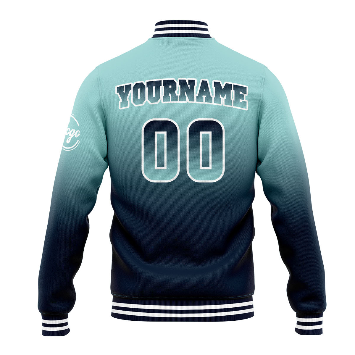 Benutzerdefinierte Verlauf Varsity-Jacke. Letterman-Jacke Light Teal Marine