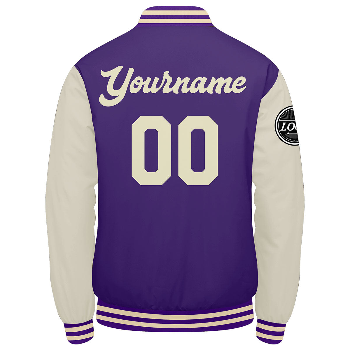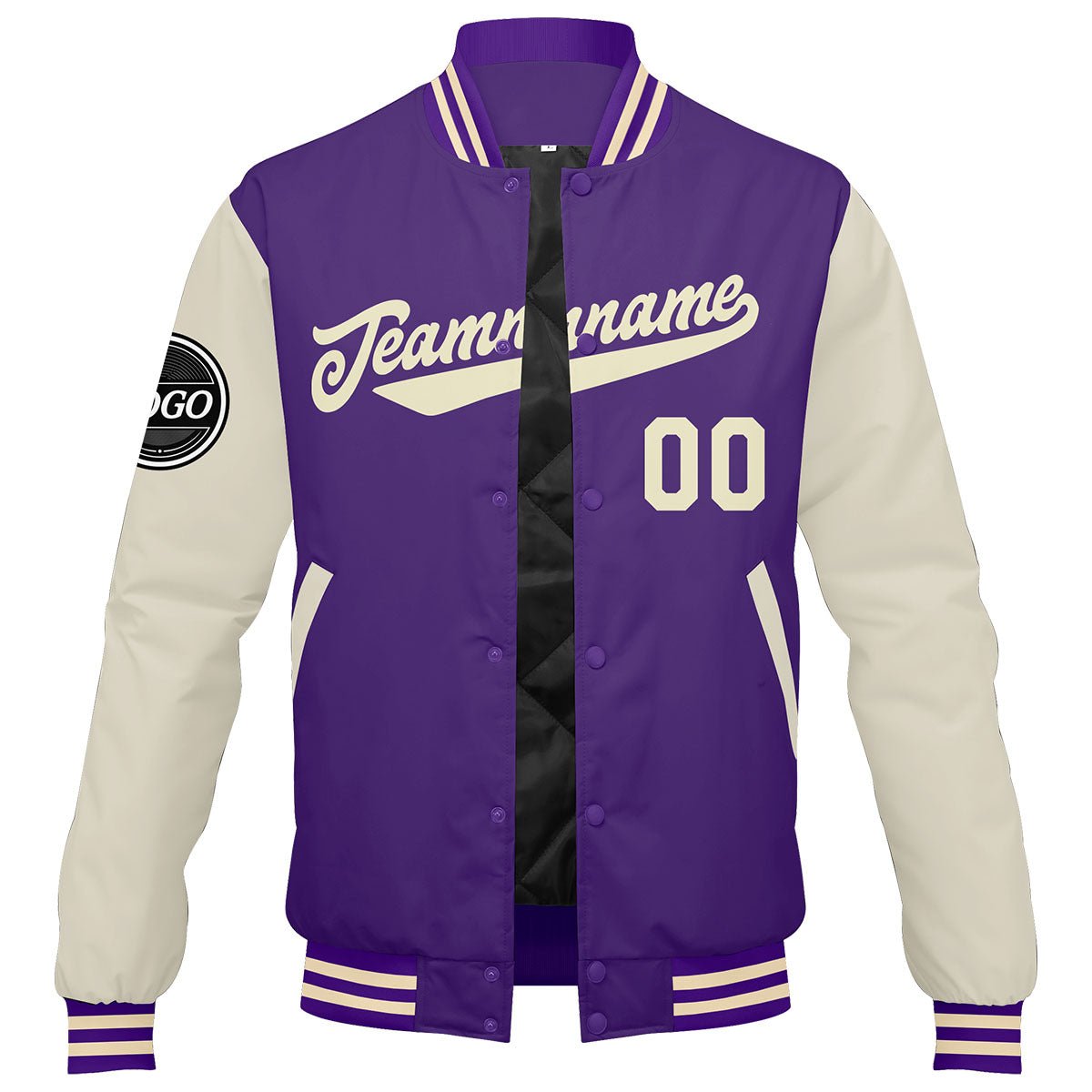 Benutzerdefinierte Verlauf Varsity-Jacke. Letterman-Jacke Lila Creme