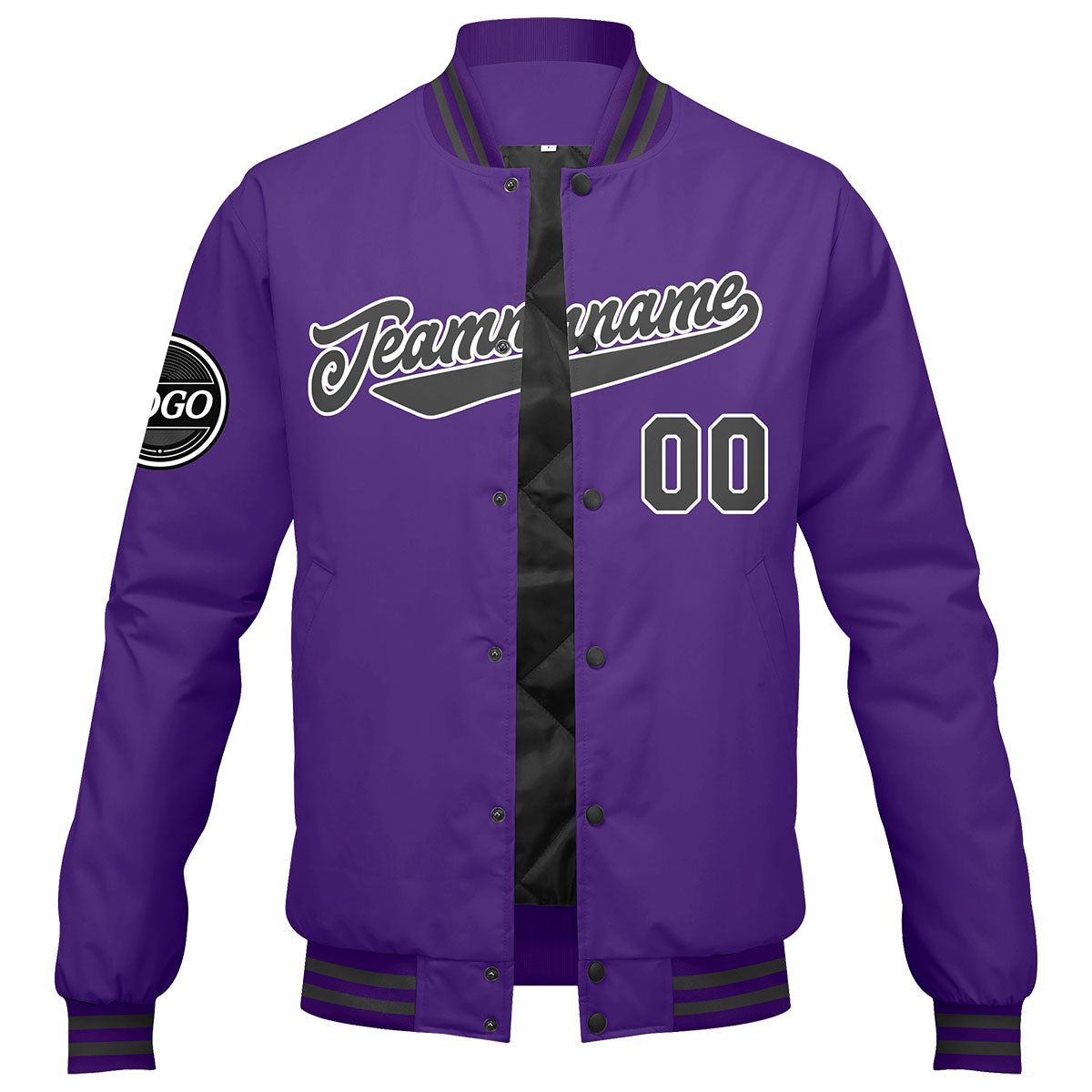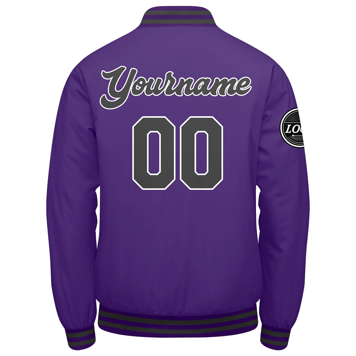 Benutzerdefinierte Verlauf Varsity-Jacke. Letterman-Jacke Lila  Grau
