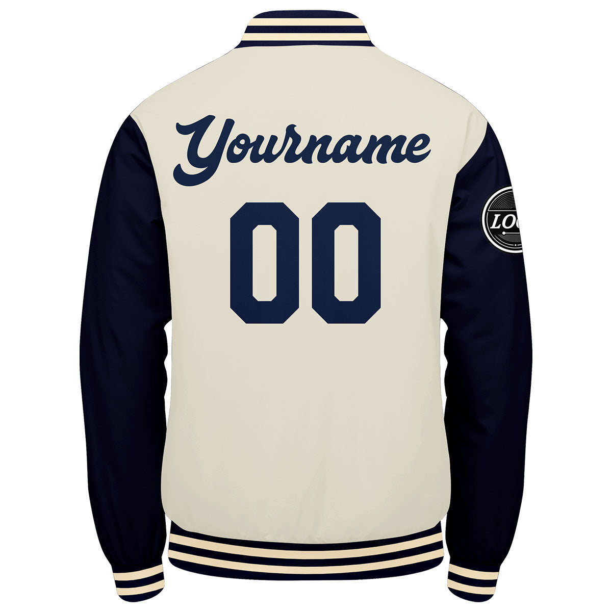 Benutzerdefinierte Verlauf Varsity-Jacke. Letterman-Jacke Marine Creme