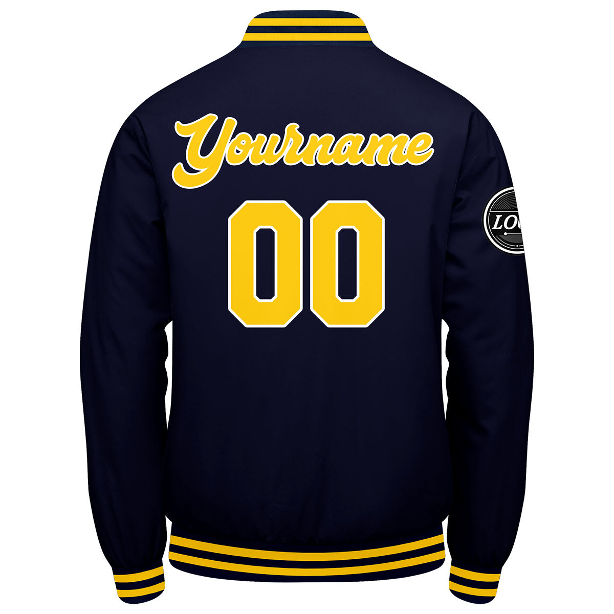 Benutzerdefinierte Verlauf Varsity-Jacke. Letterman-Jacke Marine Gelb