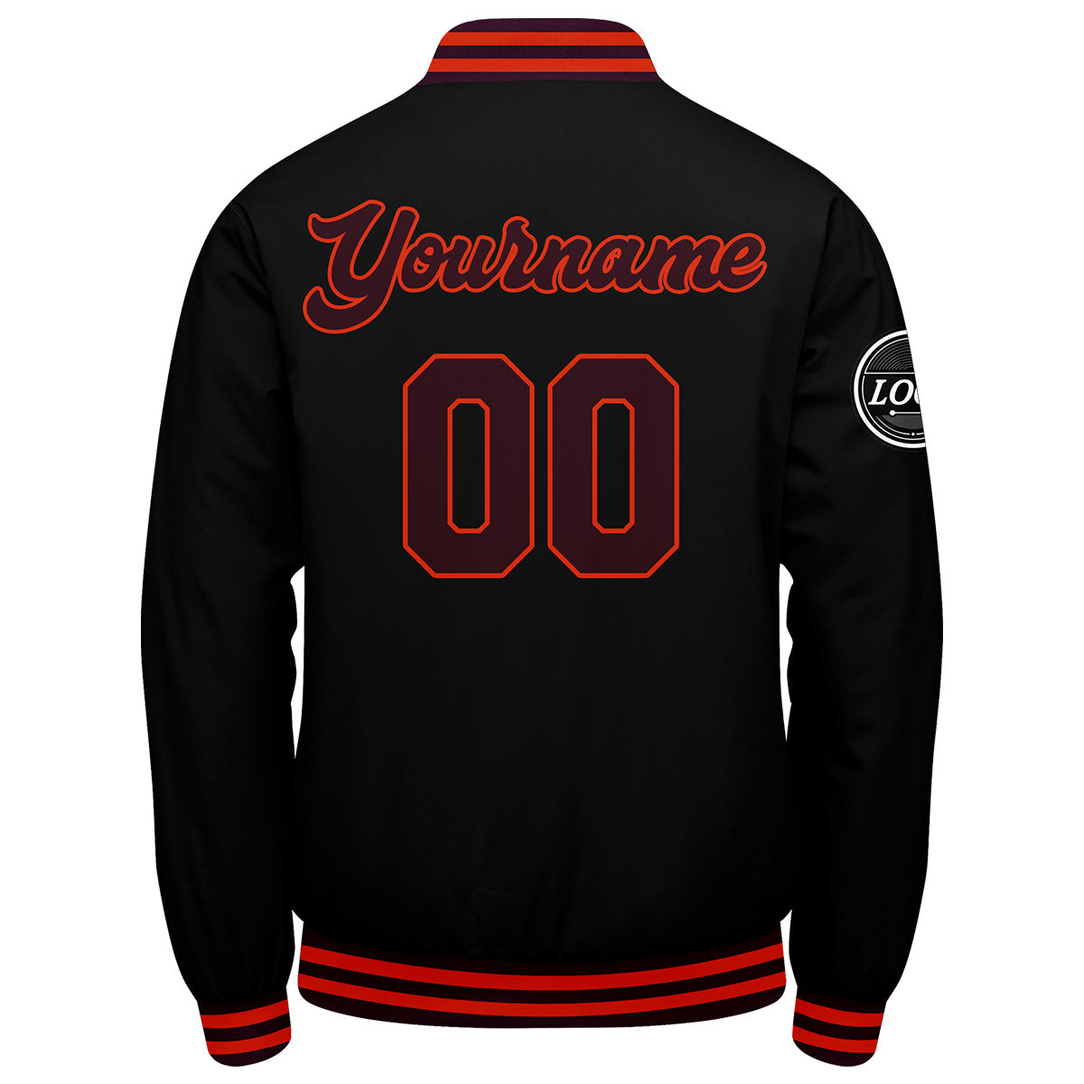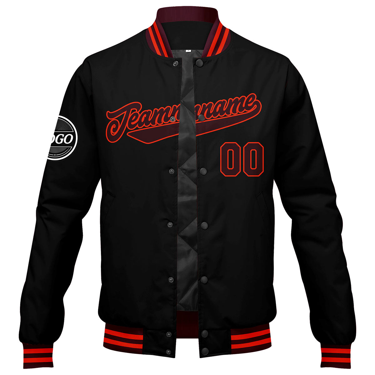 Benutzerdefinierte Verlauf Varsity-Jacke. Letterman-Jacke Marronmaroon Schwarz Orange