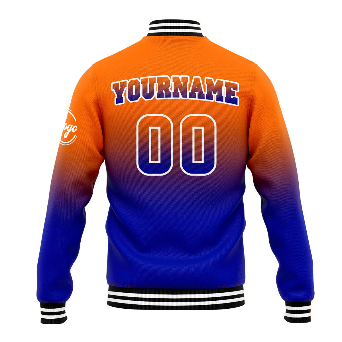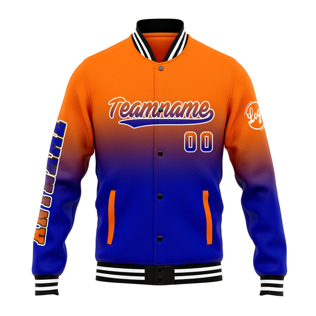 Benutzerdefinierte Verlauf Varsity-Jacke. Letterman-Jacke Orange Royal
