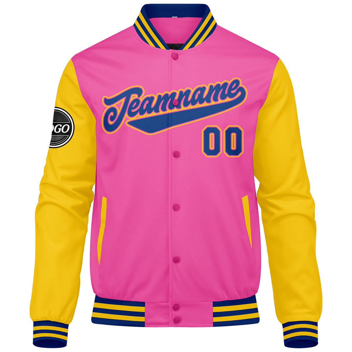Benutzerdefinierte Verlauf Varsity-Jacke. Letterman-Jacke Rosa Gelb Royal