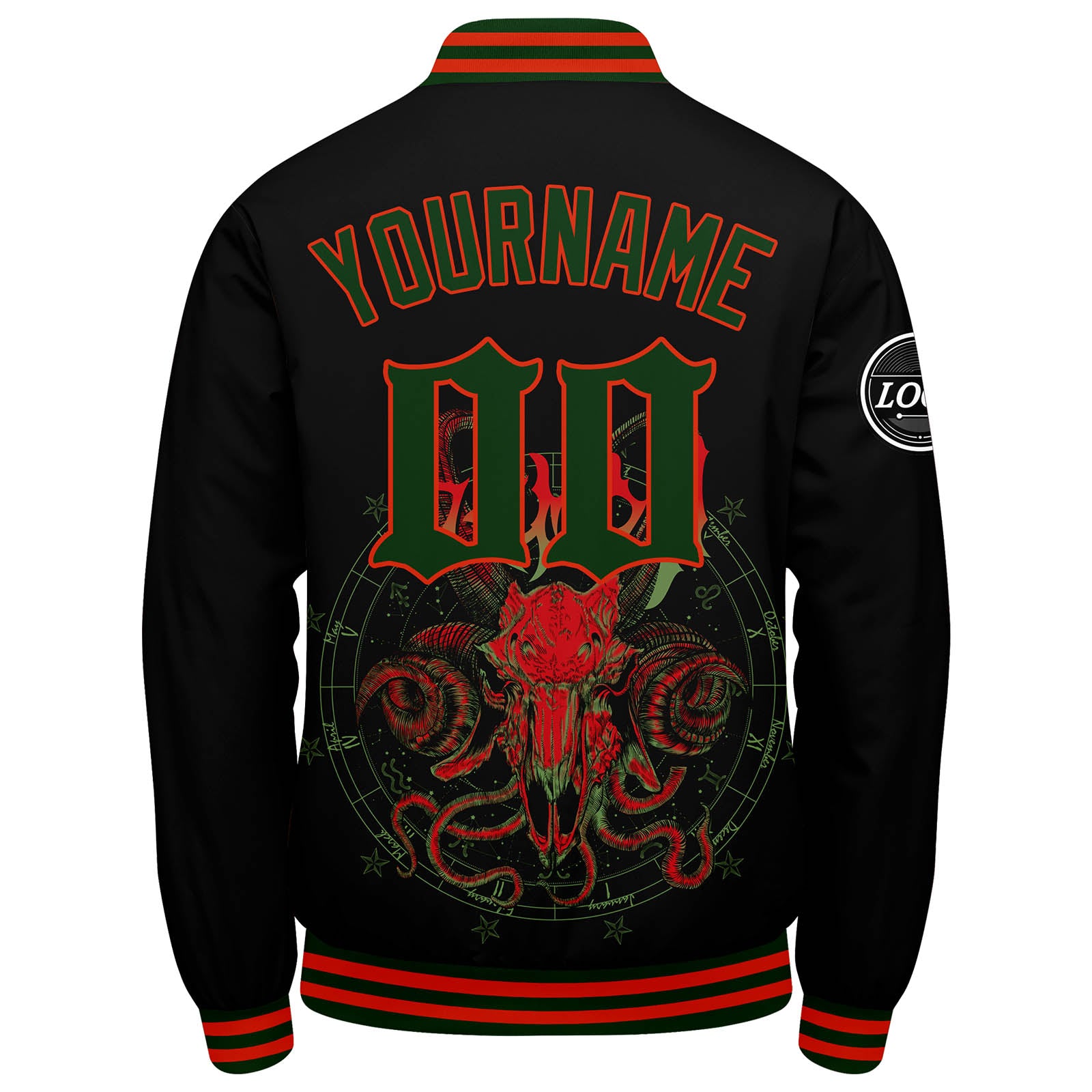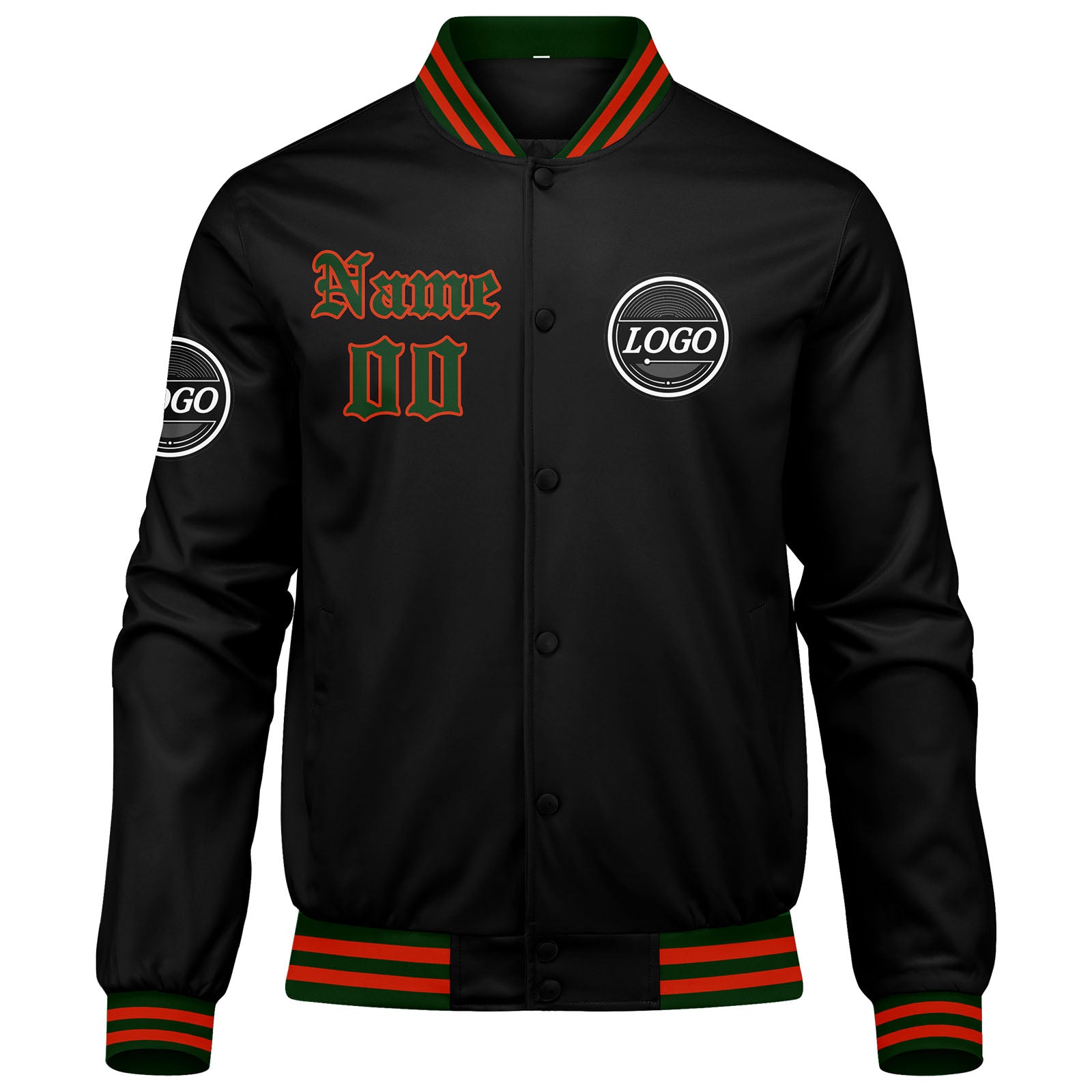 Benutzerdefinierte Verlauf Varsity-Jacke. Letterman-Jacke Rot Grün