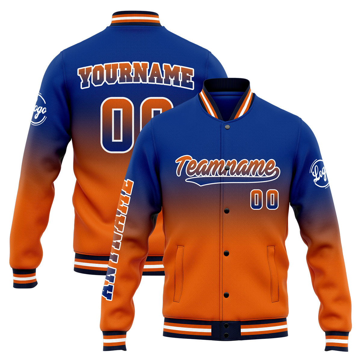Benutzerdefinierte Verlauf Varsity-Jacke. Letterman-Jacke Royal Orange